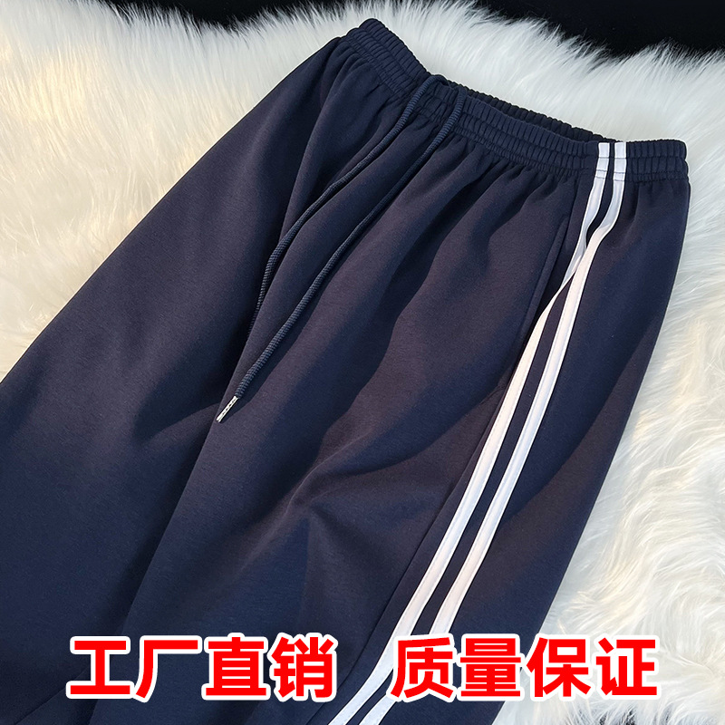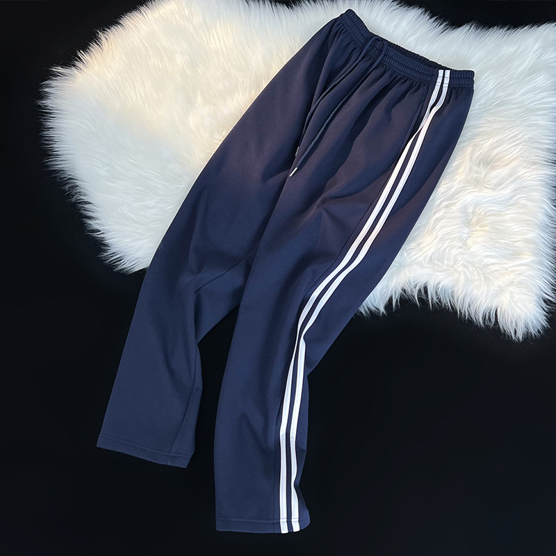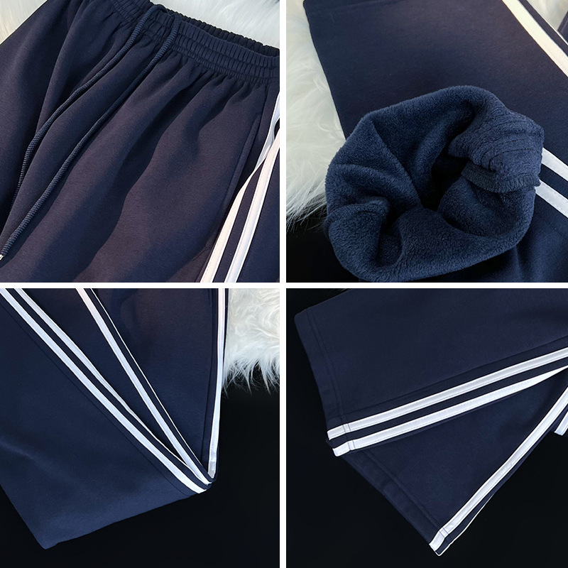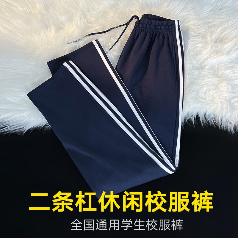 Школьные брюки с двумя полосами, женские темно-синие школьники младших и старших классов, свободные прямые школьные брюки на флисовой подкладке, брюки с двумя полосами, зимние мужские