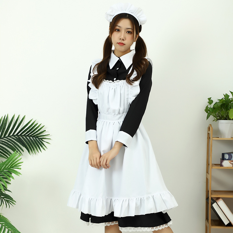 Традиционная горничная длинное платье горничной костюм поддельные Леди Британский Дворецкий Косплей Японская форма милое платье