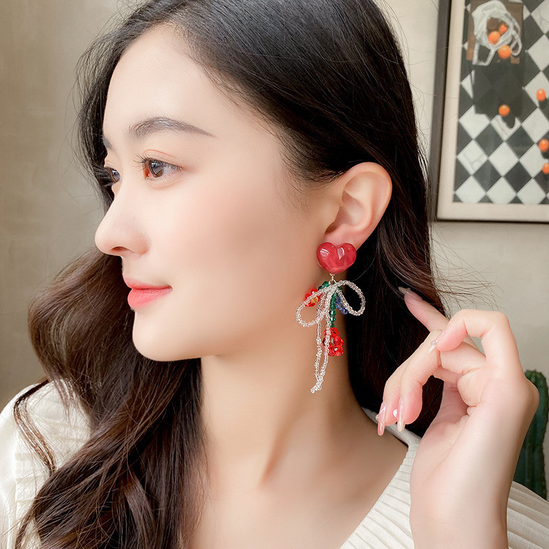 Смола Кристалл бисером Цветочный бант Любовь Серьги Длинные серьги с кисточками Девичий стиль Фея Винт Зажим для ушей