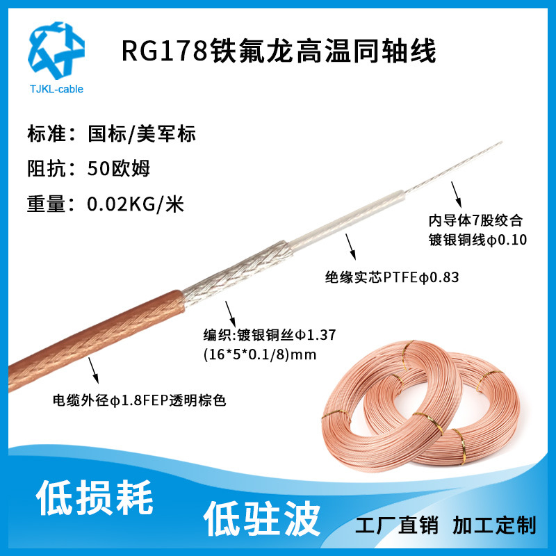 RG178 высокотемпературный посеребренный медный радиочастотный коаксиальный кабель высокочастотный сигнал антенны Удлинительный кабельный питатель прямые продажи с завода