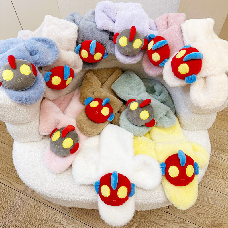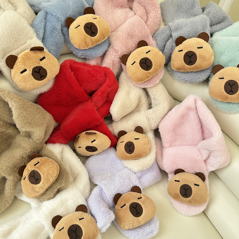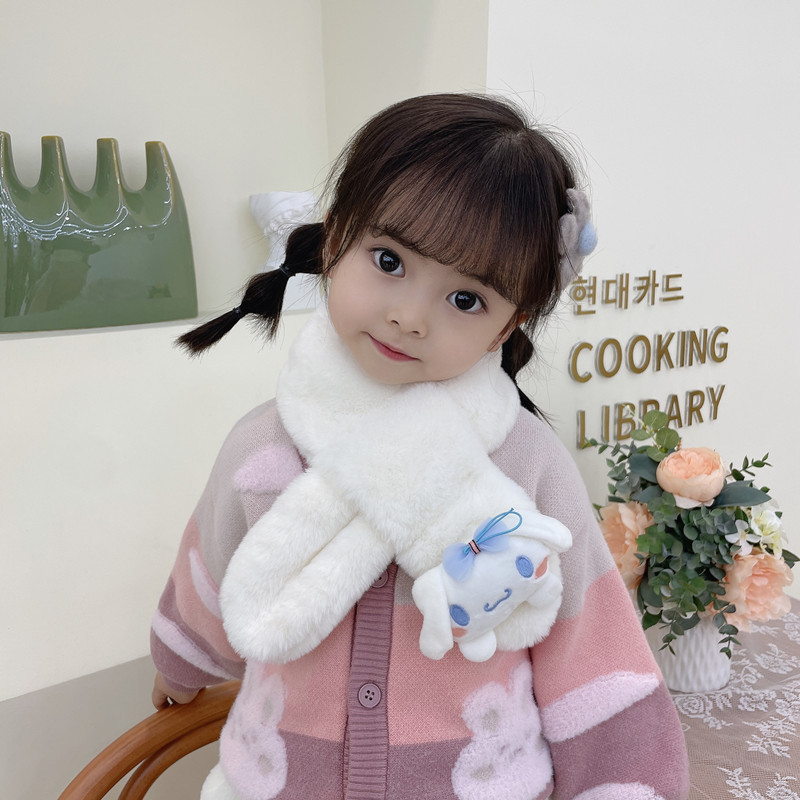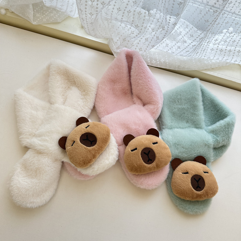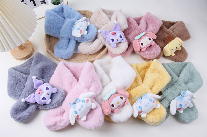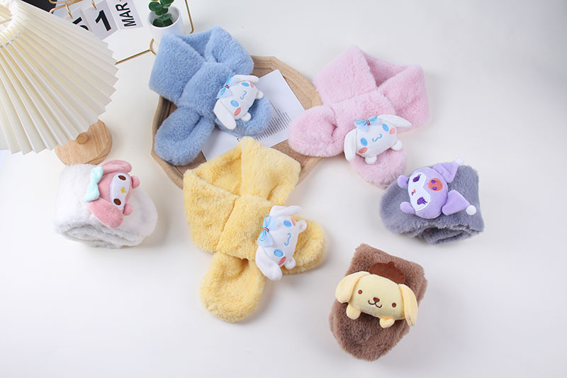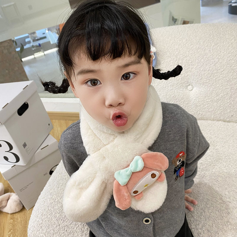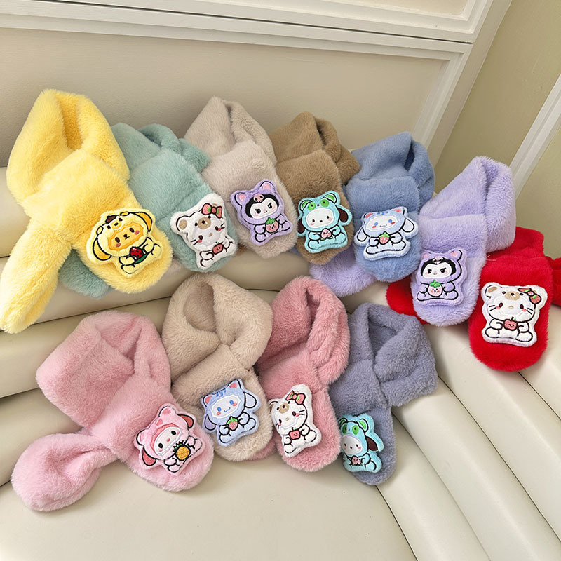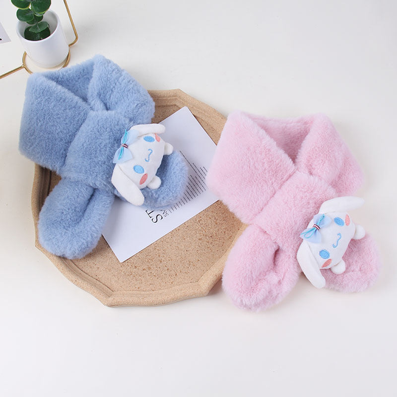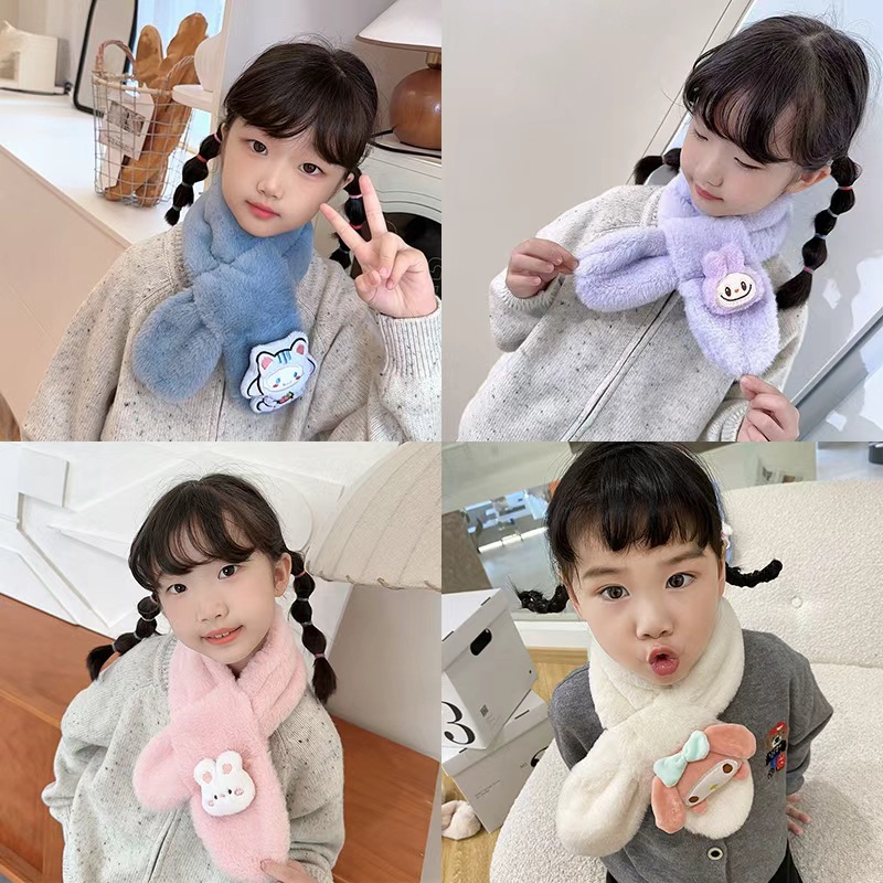 Милый детский шарф из плюша с мультяшным принтом для осени и зимы, теплый шарф с перекрестной застежкой для мальчиков и девочек, утолщенный ветрозащитный шарф для защиты шеи.