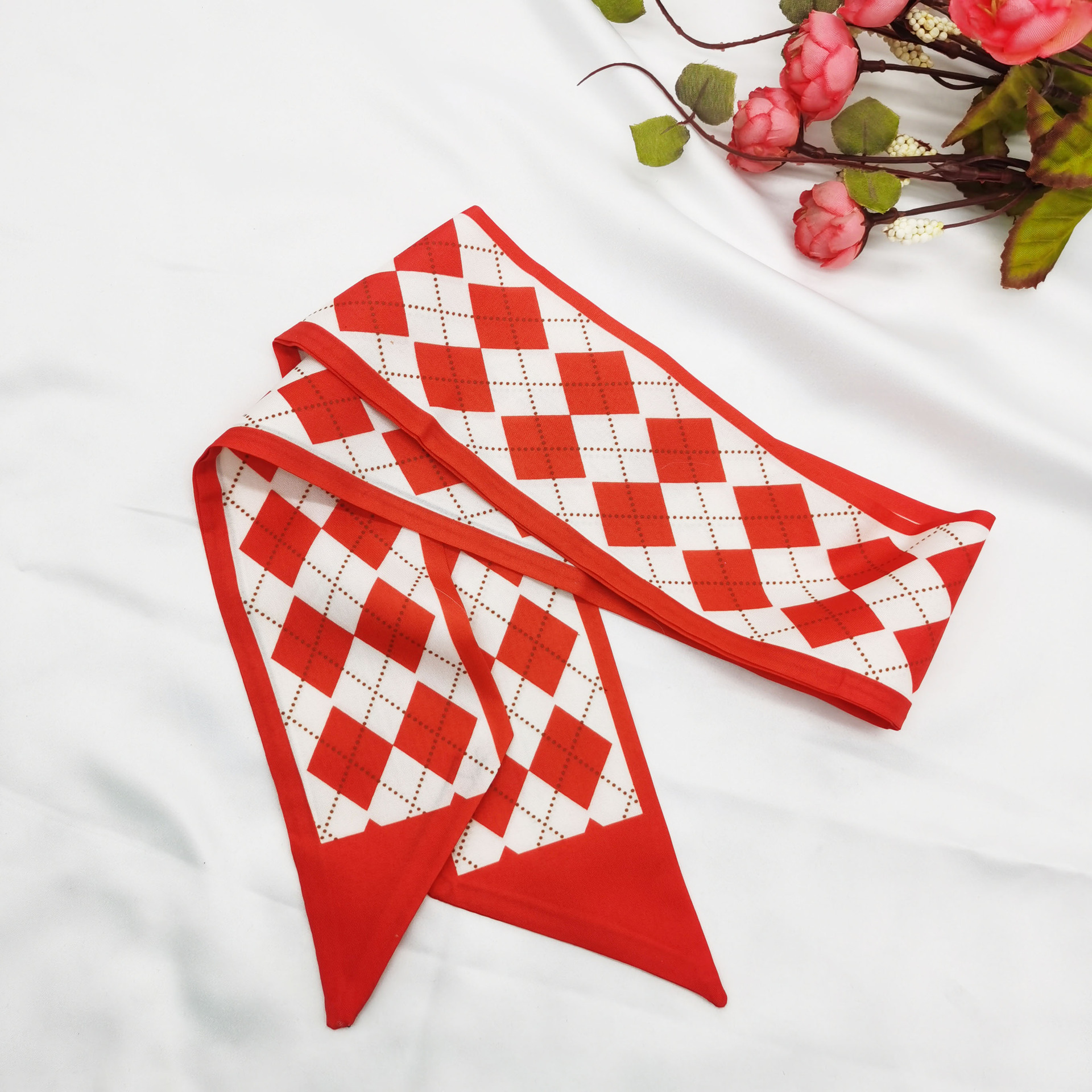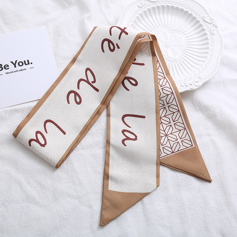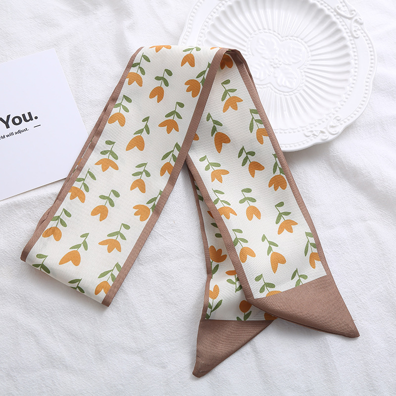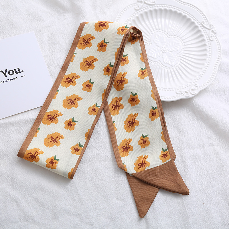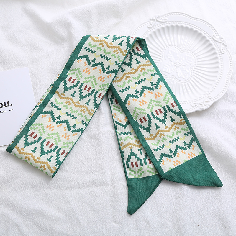 Узкий шелковый шарф в Корейском стиле с лентой и принтом, универсальная резинка для волос, тканевый пояс для галстуков, свежий многоцветный шарф, мягкая лента