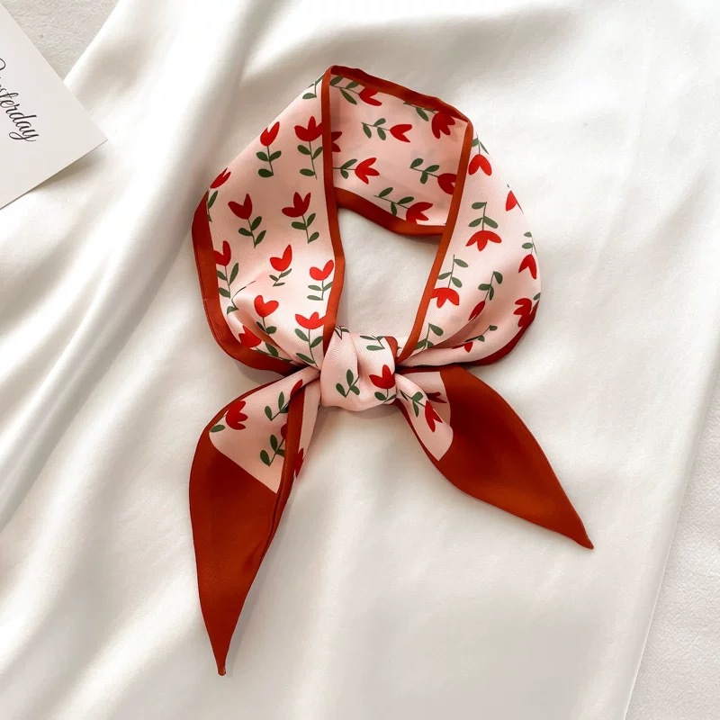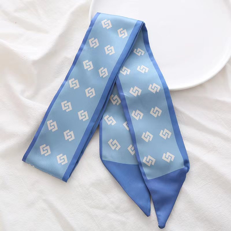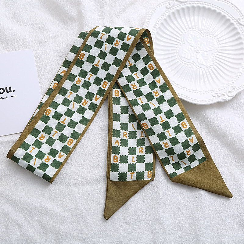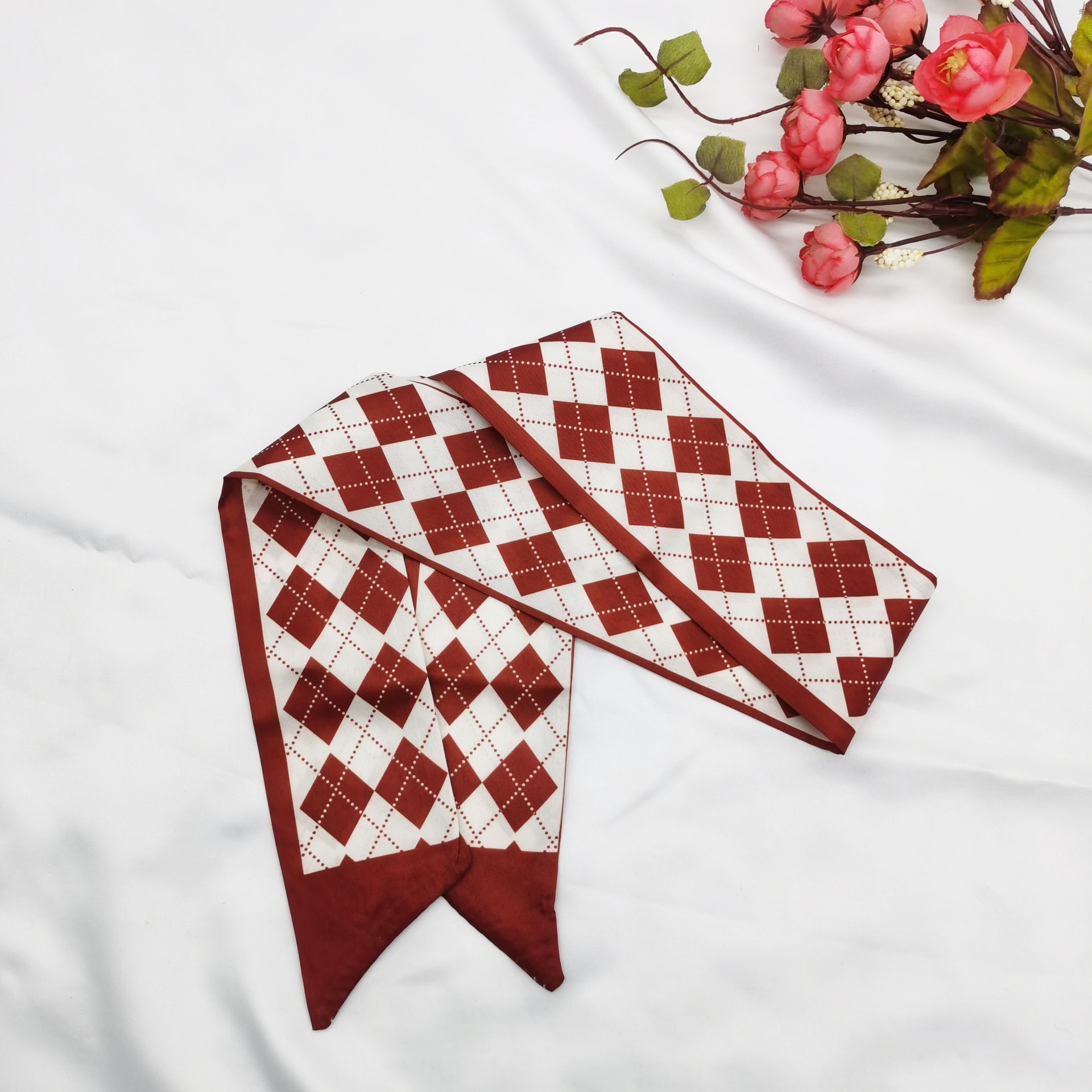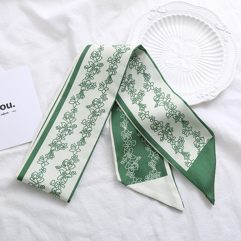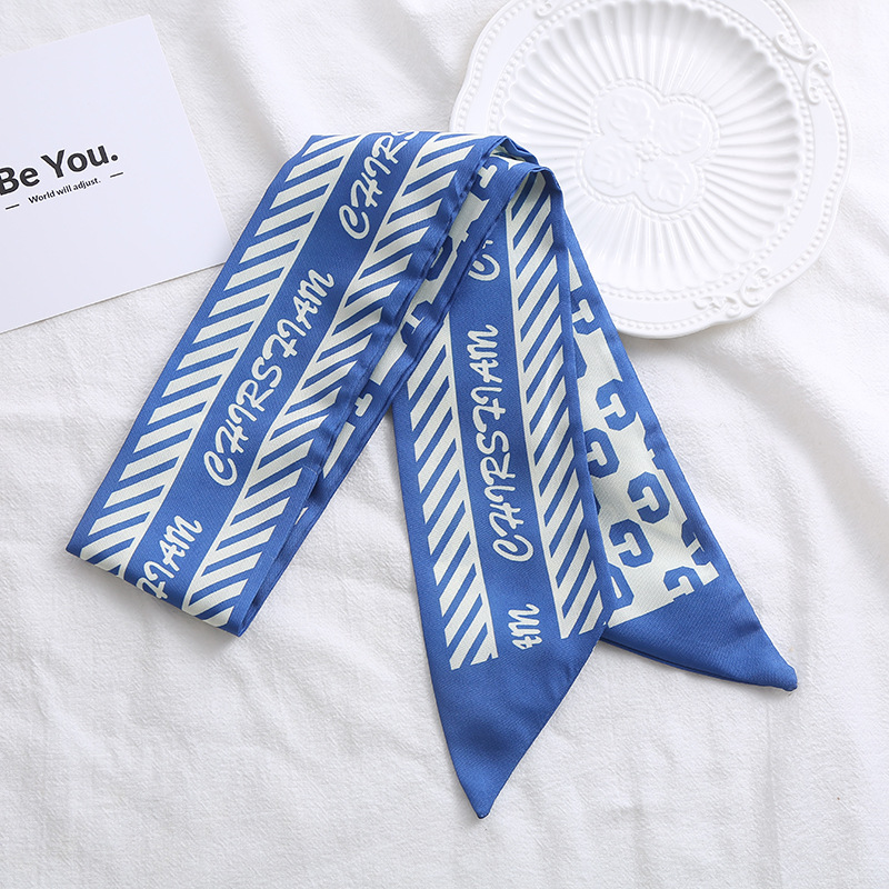 Узкий шелковый шарф в Корейском стиле с лентой и принтом, универсальная резинка для волос, тканевый пояс для галстуков, свежий многоцветный шарф, мягкая лента