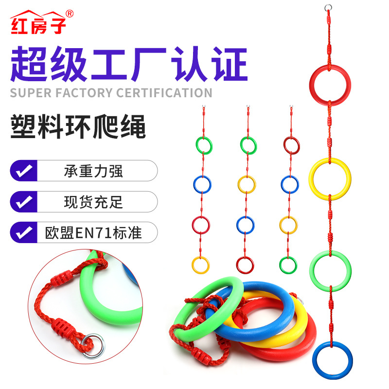Детские игрушки для лазания, подходящие для использования в помещении и на улице, включая веревки для лазания, пластиковые кольца и веревки для качелей.