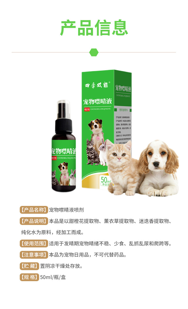 Спрей-ингибитор Four Seasons Dual Energy для кошек и собак в период оestrus, специально предназначенный для подавления тревоги и желания, дропшиппинг под частной маркой.
