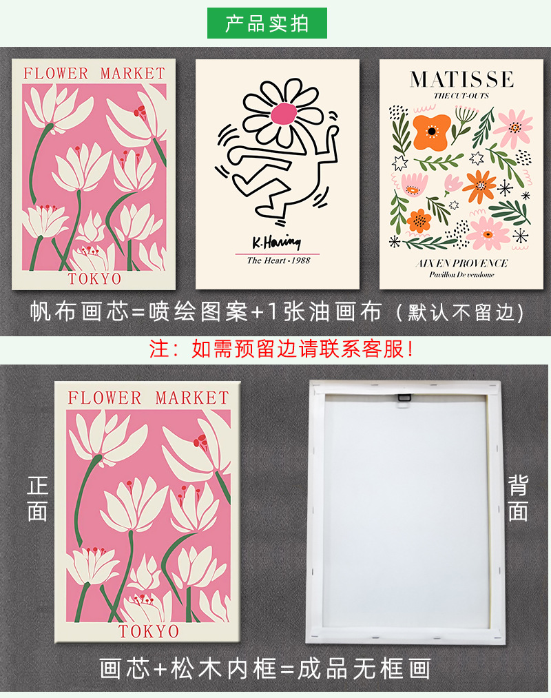 Ядро для рисования на холсте (картина распылением + холст, по умолчанию без края); Бескаркасная живопись (Внутренняя Рамка из соснового дерева + сердцевина холста)