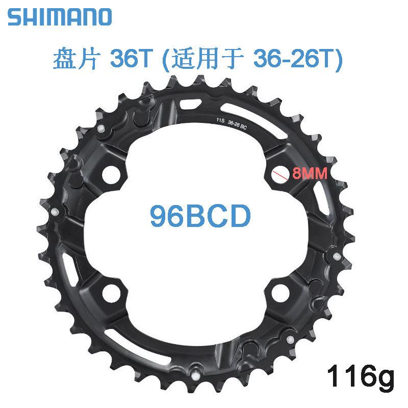 双盘:26(64BCD)/36T(shimano M5100牙盘原装)(兼容10/11速)