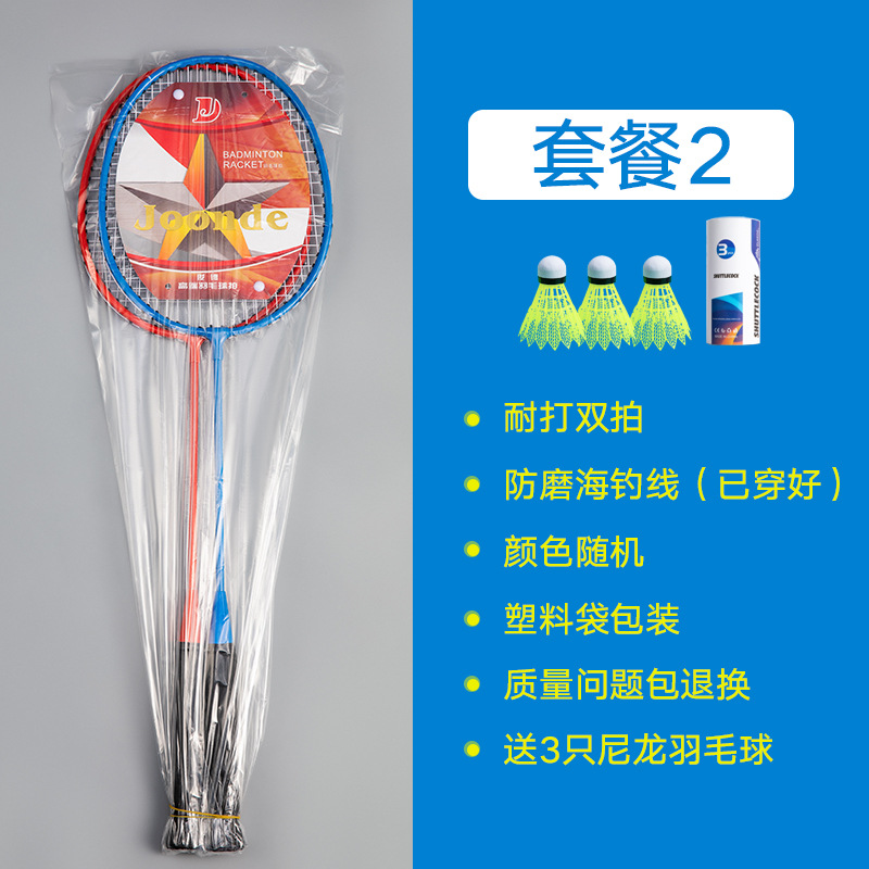 Ракетка для бадминтона с прямым запуском с фабрики, две ракетки для семейных развлечений с 3 шариками, устойчивые к ударам, прочный костюм для ракетки