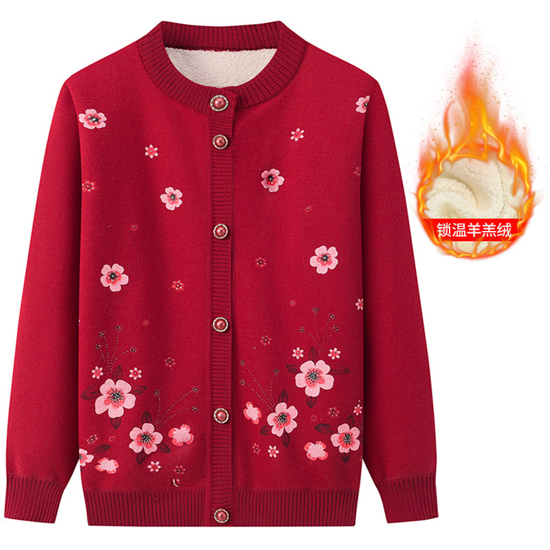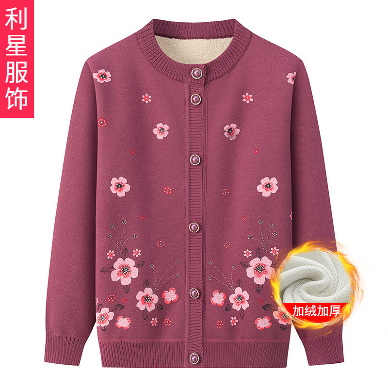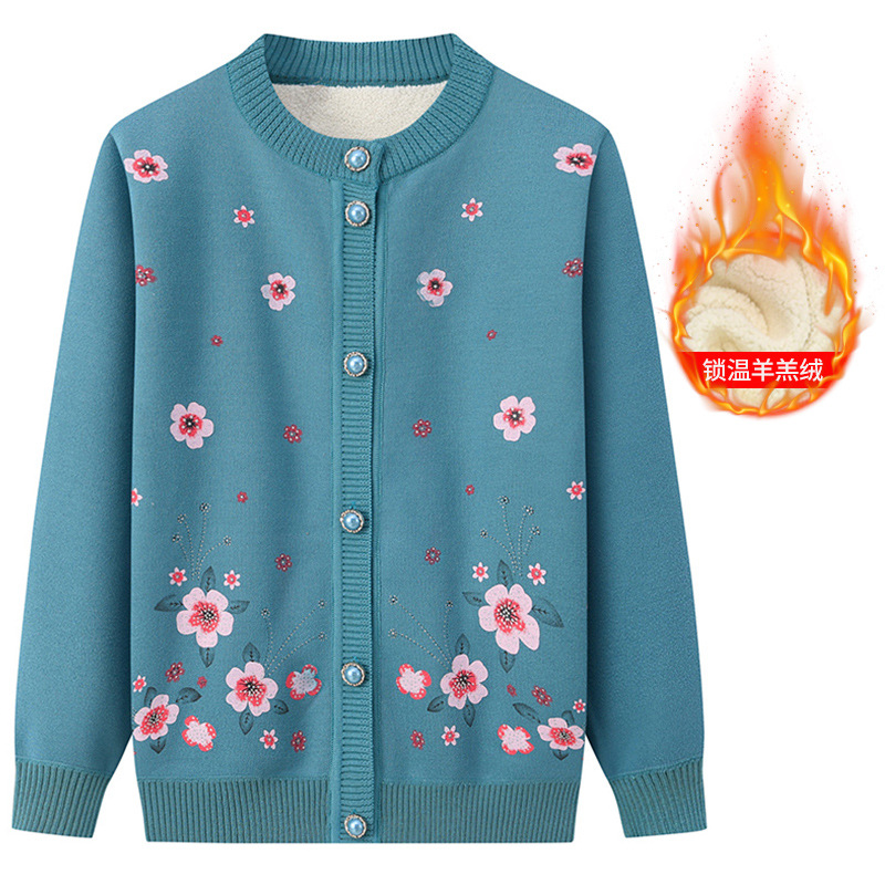 Зимний свитер для матери Кардиган Для Бабушек среднего и пожилого возраста, утепленное верхнее пальто на флисовой подкладке, на весну и осень