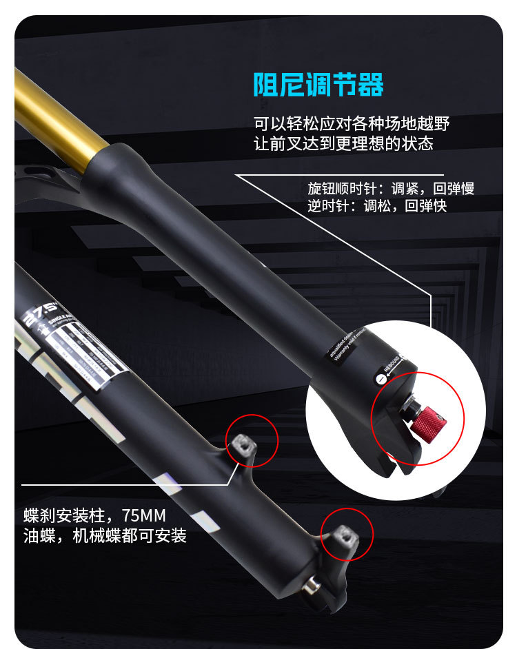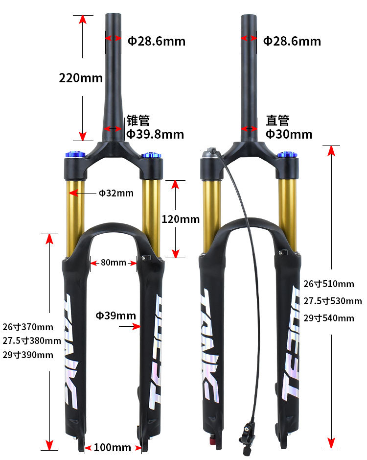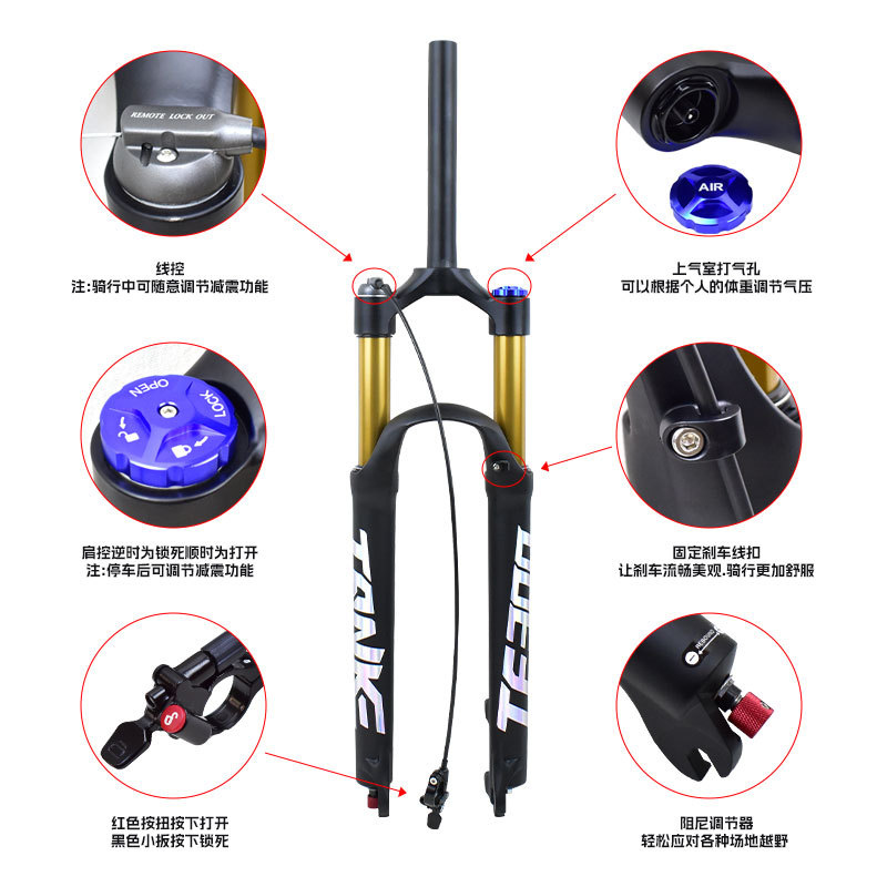 Углеродный клиент TANKE передняя вилка для горного велосипеда Золотая трубка 26/27,5/29 плечевое управление алюминиевый сплав амортизатор давления воздуха передняя вилка 32