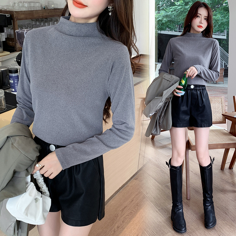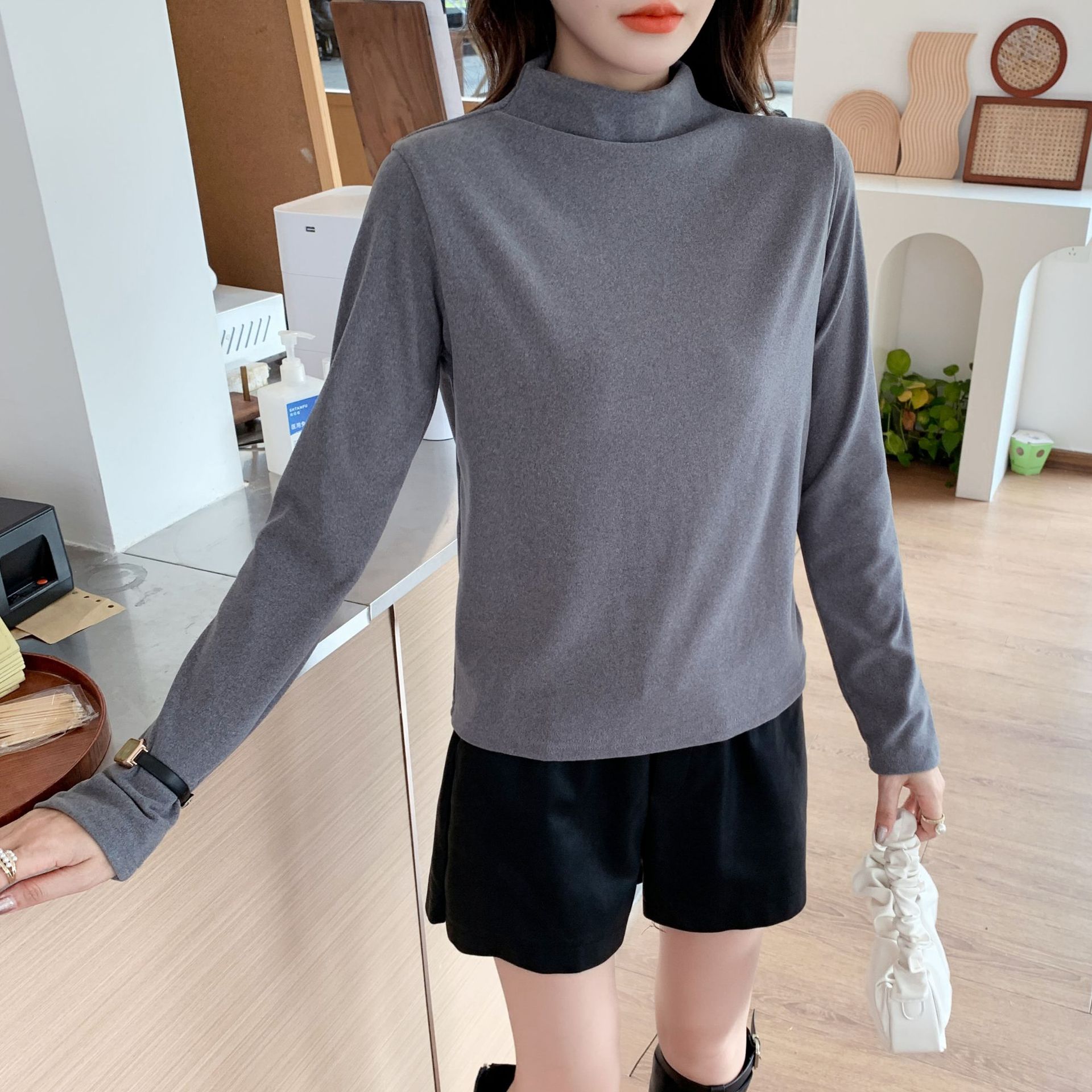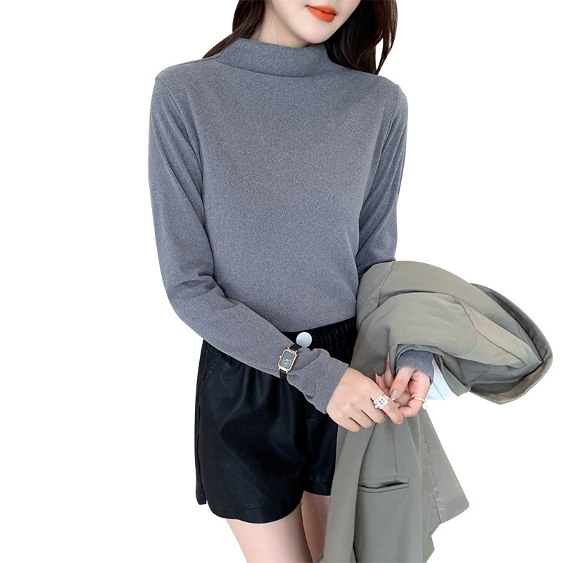 Двусторонняя бархатная нижняя рубашка, Женская осенне-зимняя шлифовальная рубашка с полувысоким воротником и длинным рукавом, толстый теплый, сохраняющий тепло, облегающий Универсальный Топ для женщин