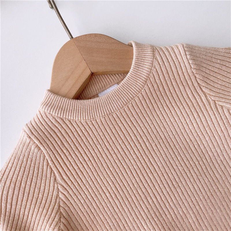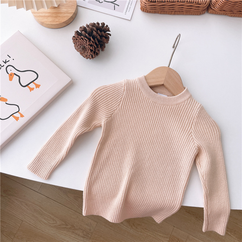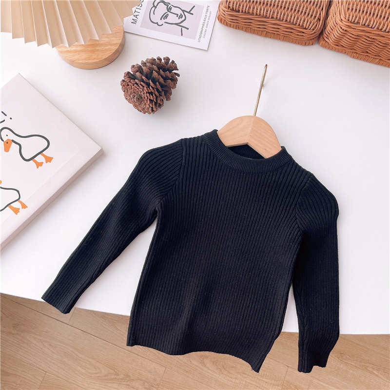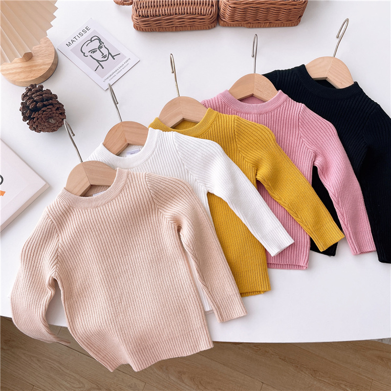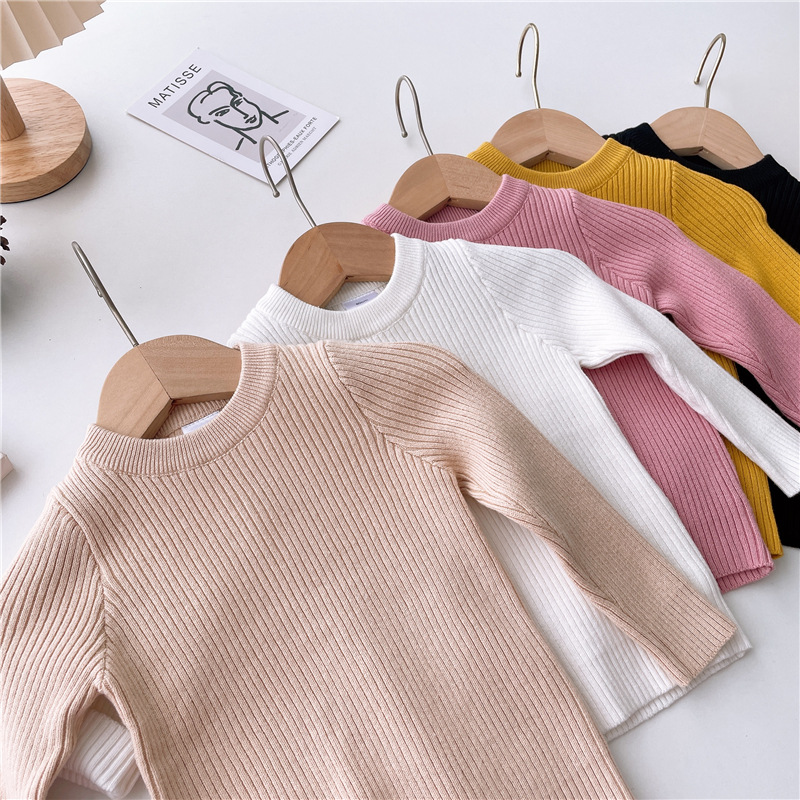 Осенне-Зимний вязаный свитер с хлопковой подложкой для девочек, детская эластичная детская одежда с круглым вырезом и ямой, внутренняя эластичная детская одежда для детей и женщин