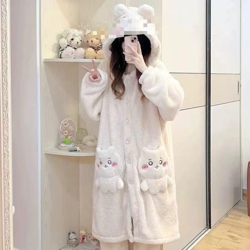Коралловая бархатная детская ночная рубашка Tianxian, утолщенная мультяшная пара, в том же стиле, с длинными рукавами, милый мультяшный теплый дом
