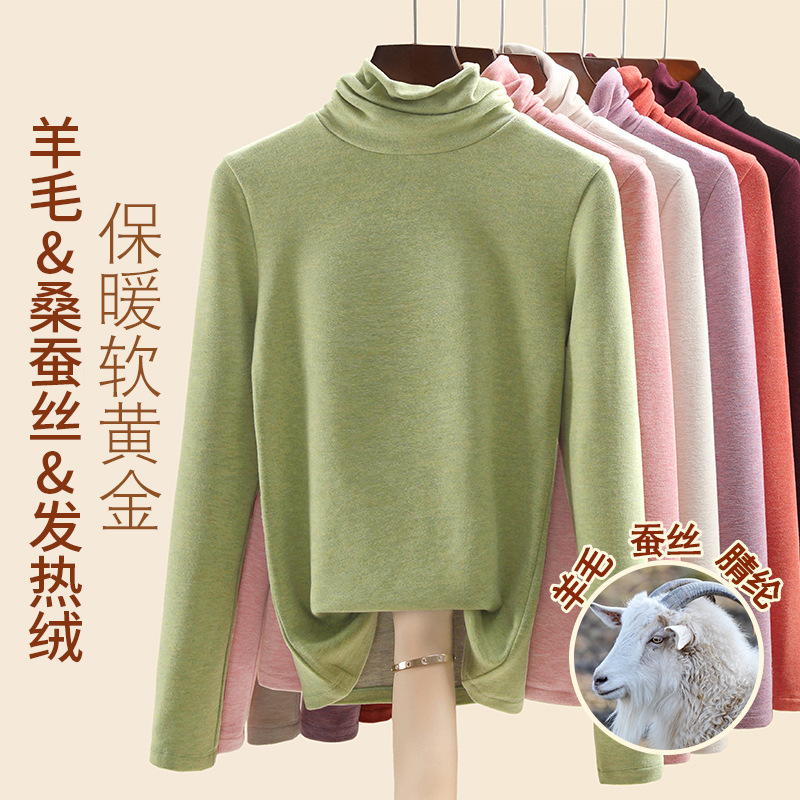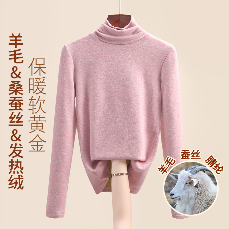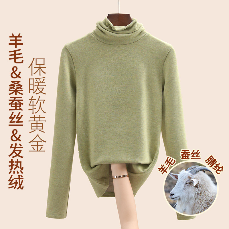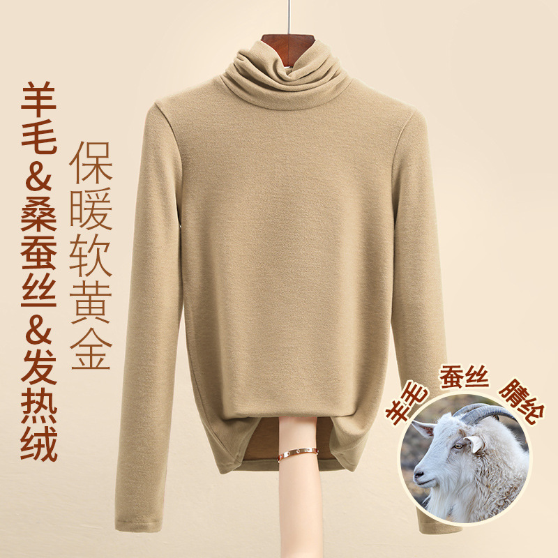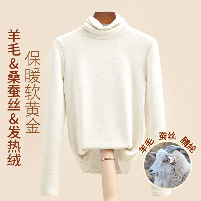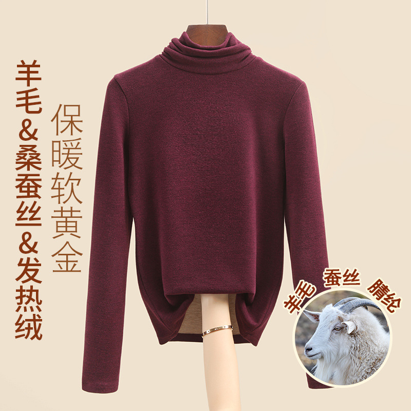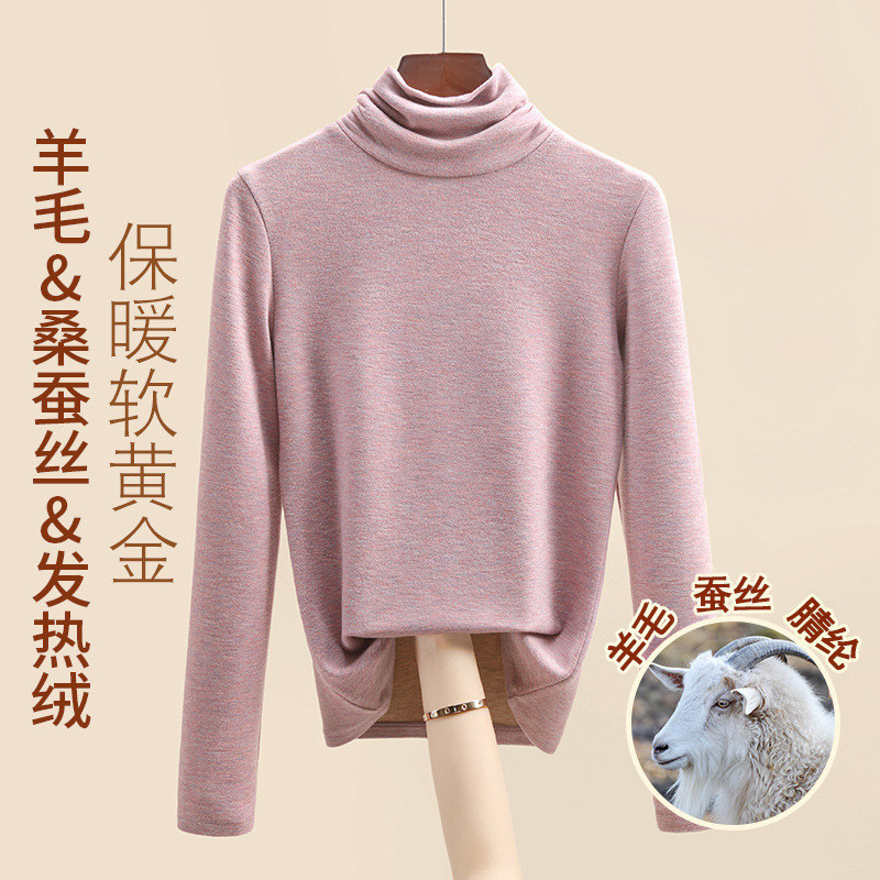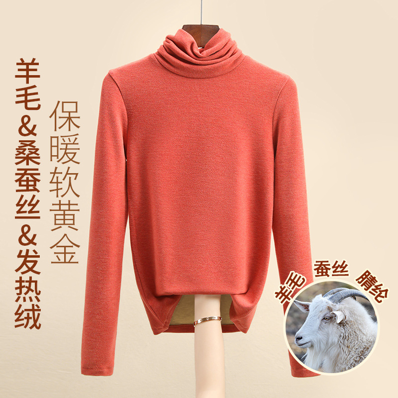 Женская термофутболка из шерсти и шелка, новинка осенне-зимней коллекции 2025 года, внутренний слой с флисом для тепла и сохранения тепла.