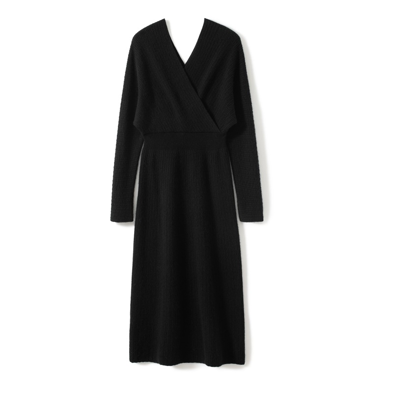 Повседневное однотонное кашемировое платье с V-образным вырезом, женский свитер в стиле ретро с перекрестным вырезом, трикотажная юбка А-силуэта, базовая юбка выше колена, одношаговая юбка