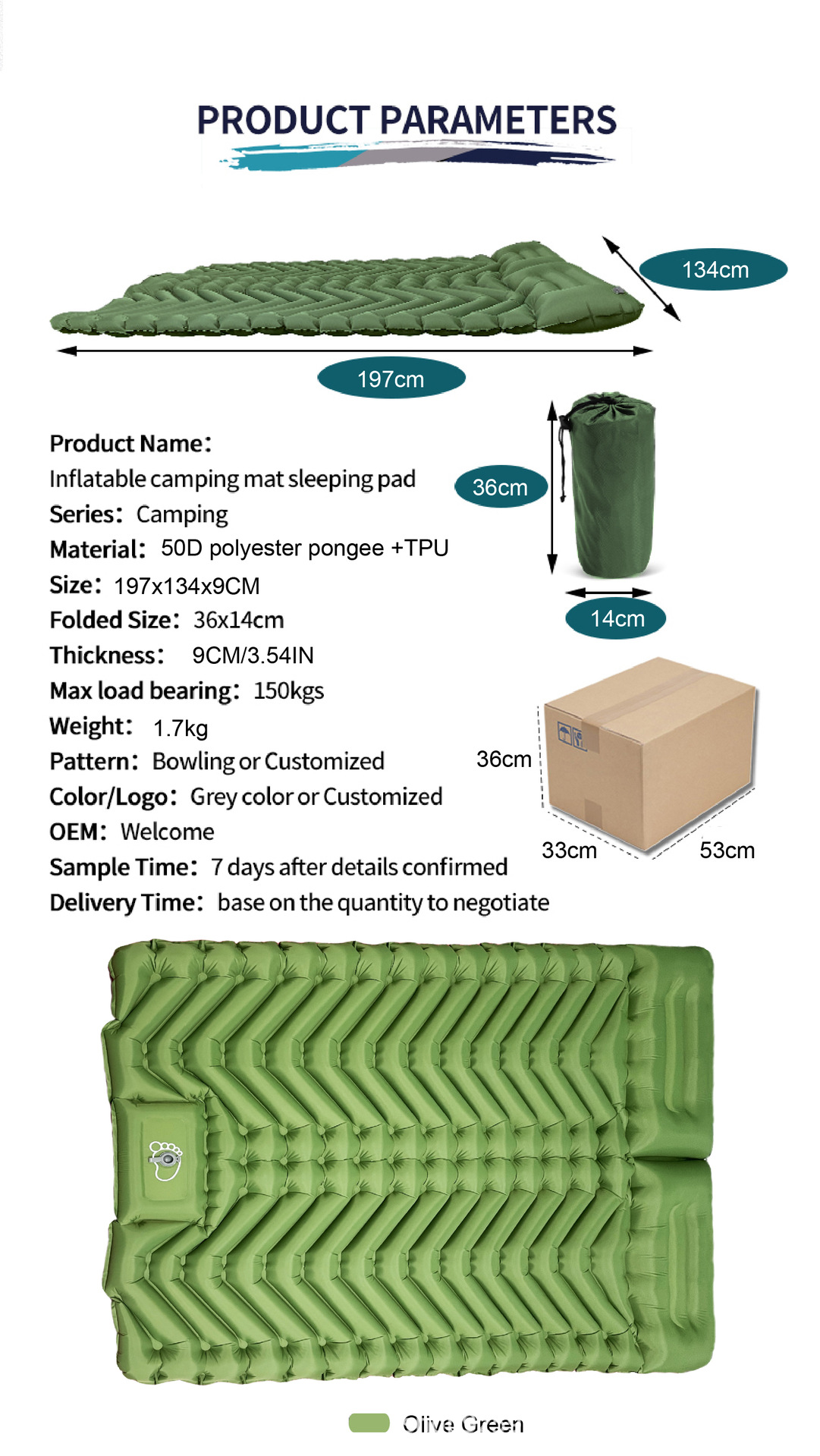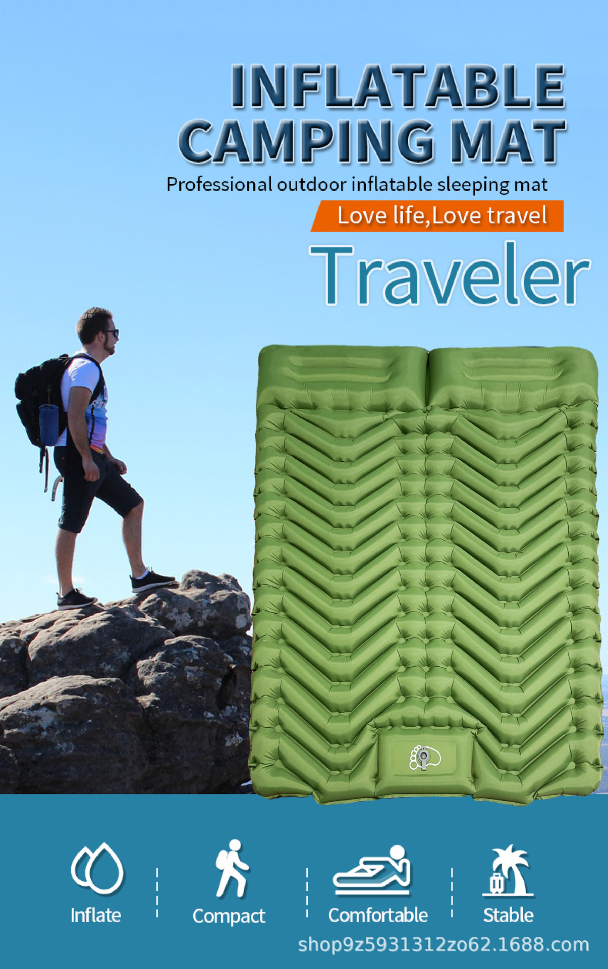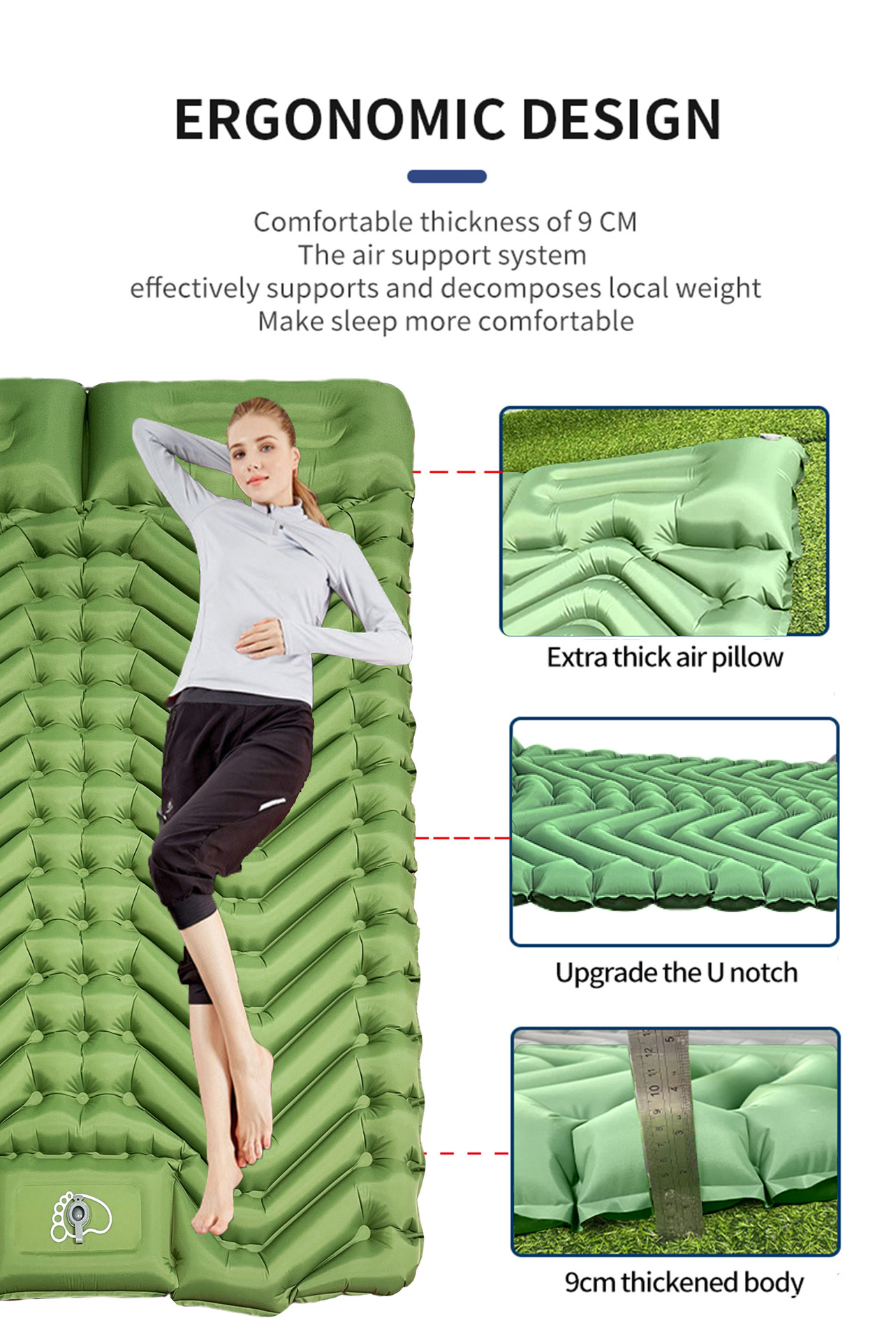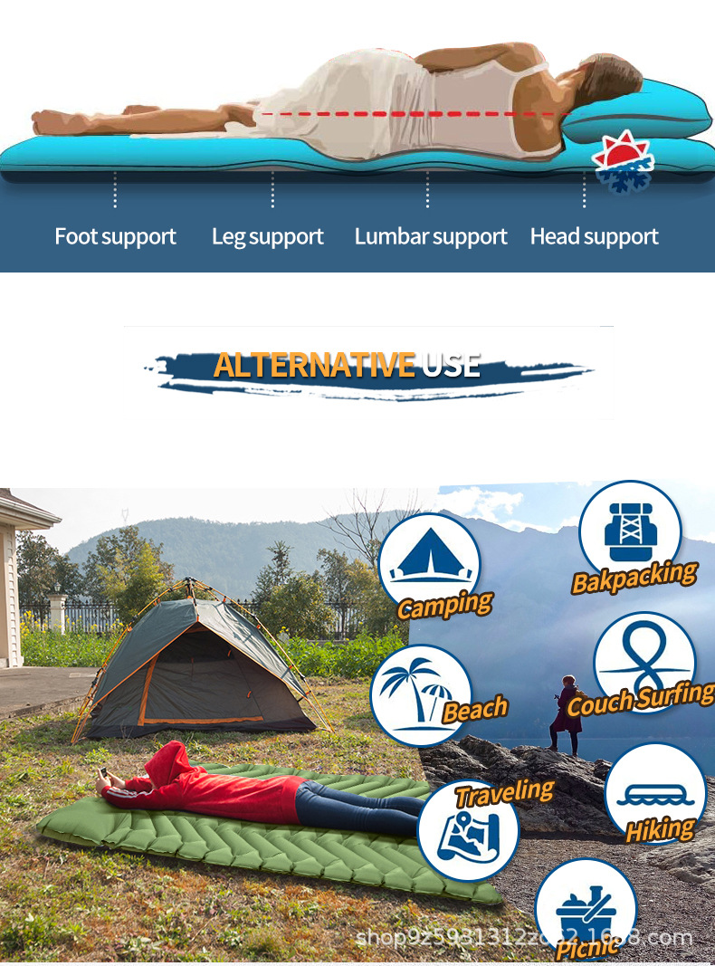 Двухслойный надувной туристический коврик для сна с подушкой, надувная кровать-палатка для отдыха на природе, утолщенный и портативный.