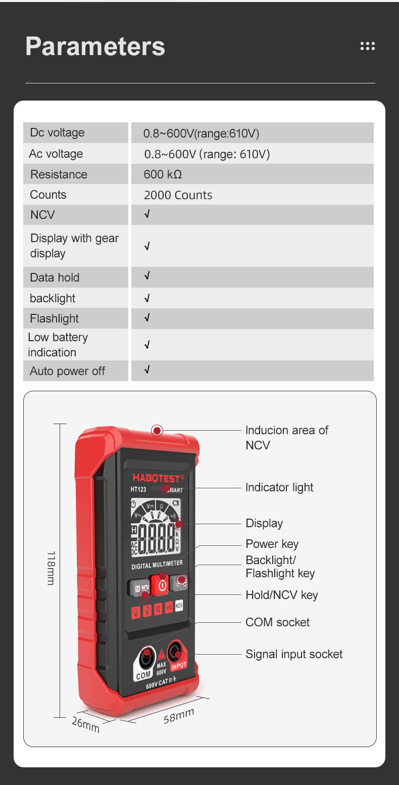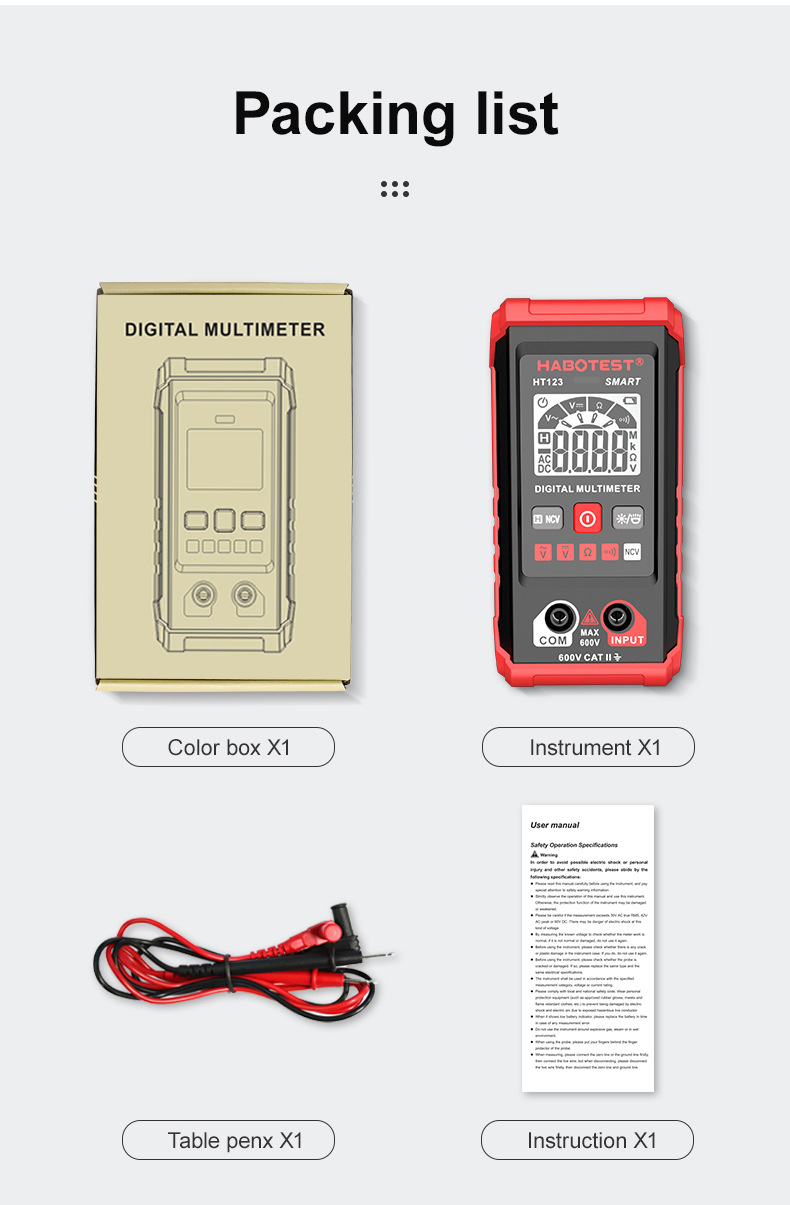 Мультиметр HABOTEST HT123 с цифровым дисплеем, высокоточный мини-мультиметр, интеллектуальный измерительный прибор для электриков