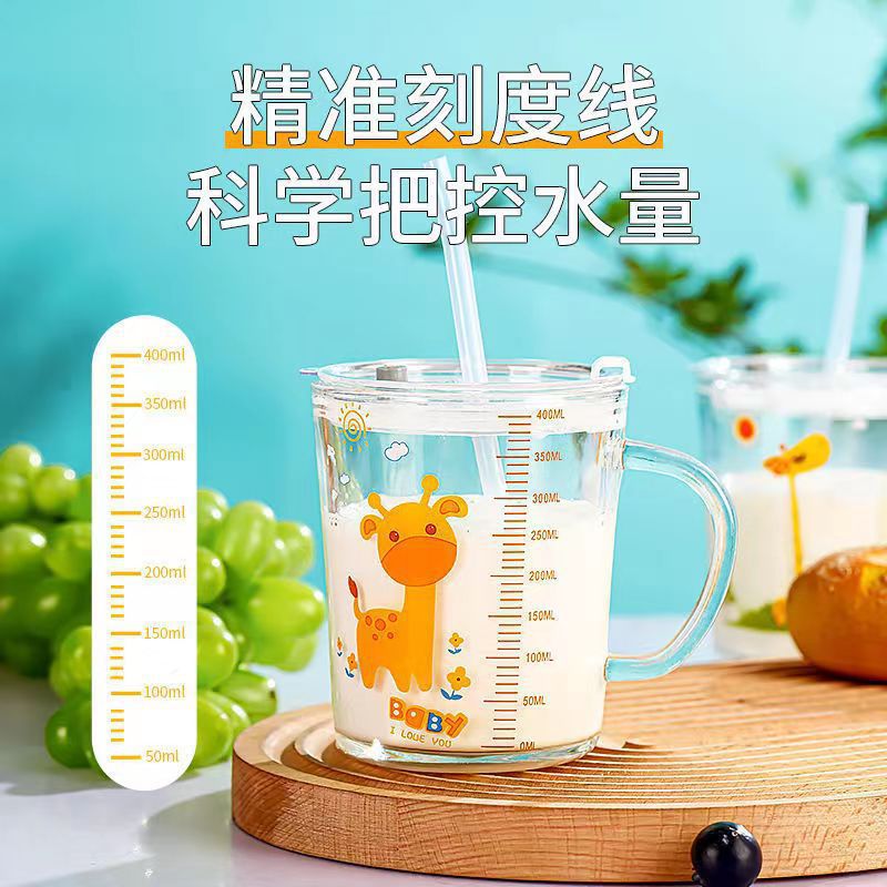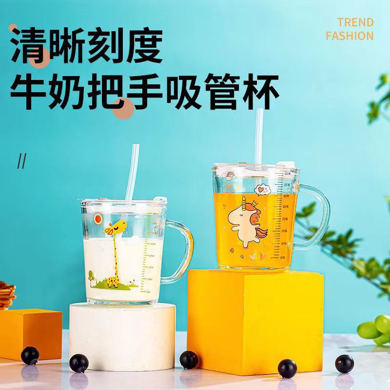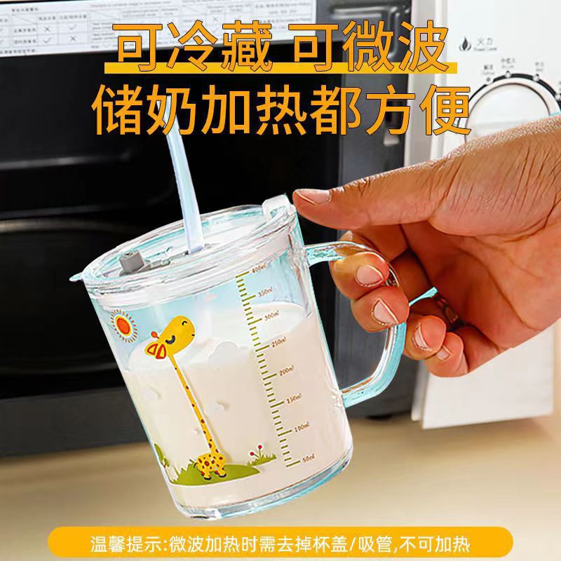 Чашка для молока детская чашка для весов стеклянная чашка для воды Женский Летний милый бытовой завтрак сухое молоко специальный с соломенной чашкой