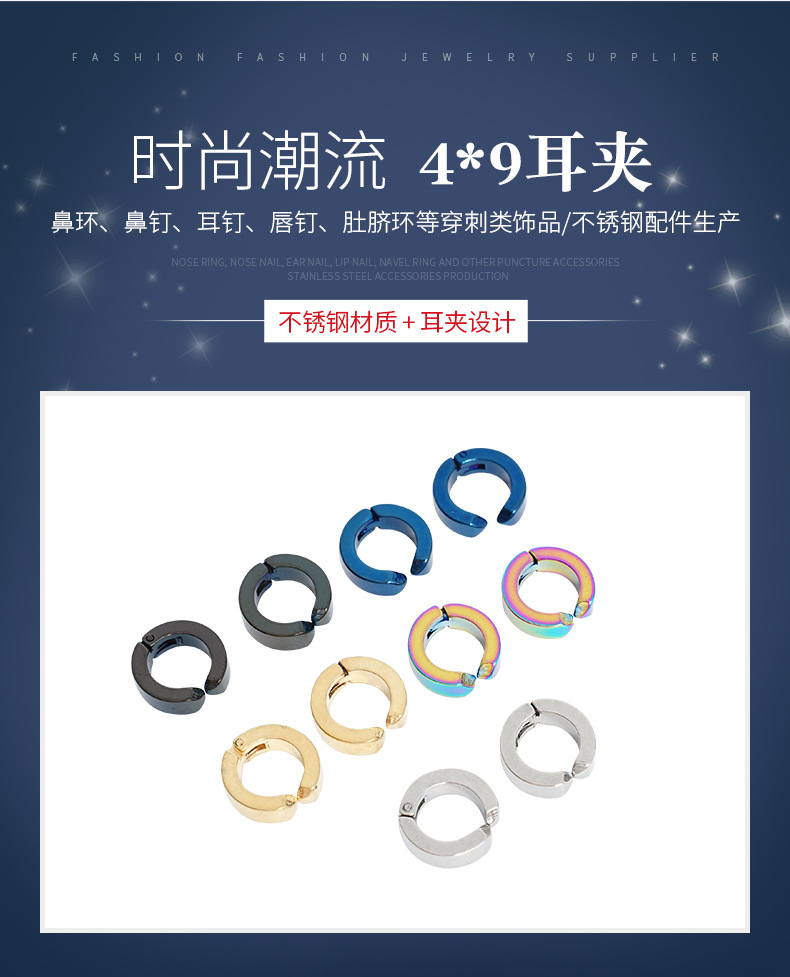 Пятно европейские и американские простые из нержавеющей стали, темпераментные мужские зажимы для пирсинга, серьги с пряжками, серьги, серьги, стальные ювелирные изделия оптом