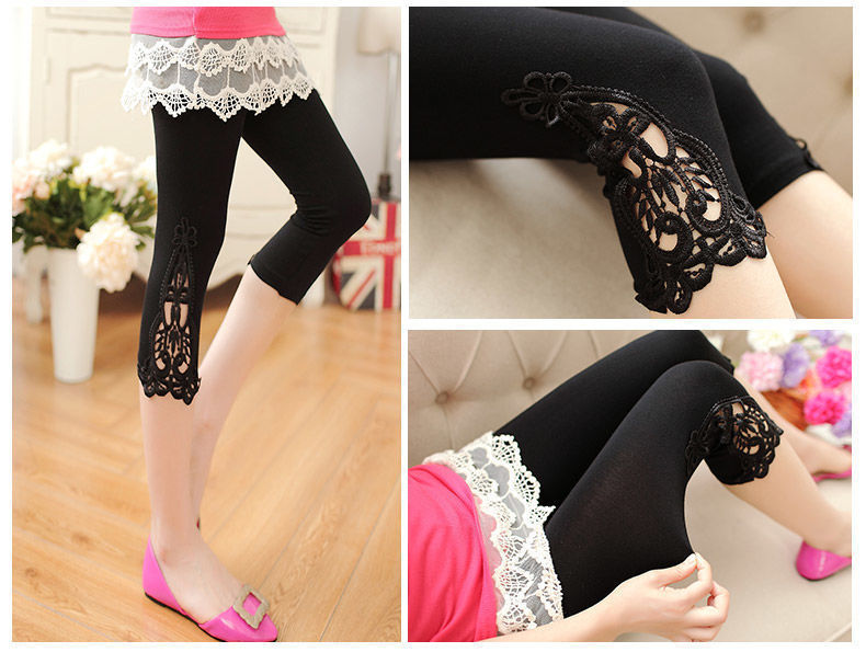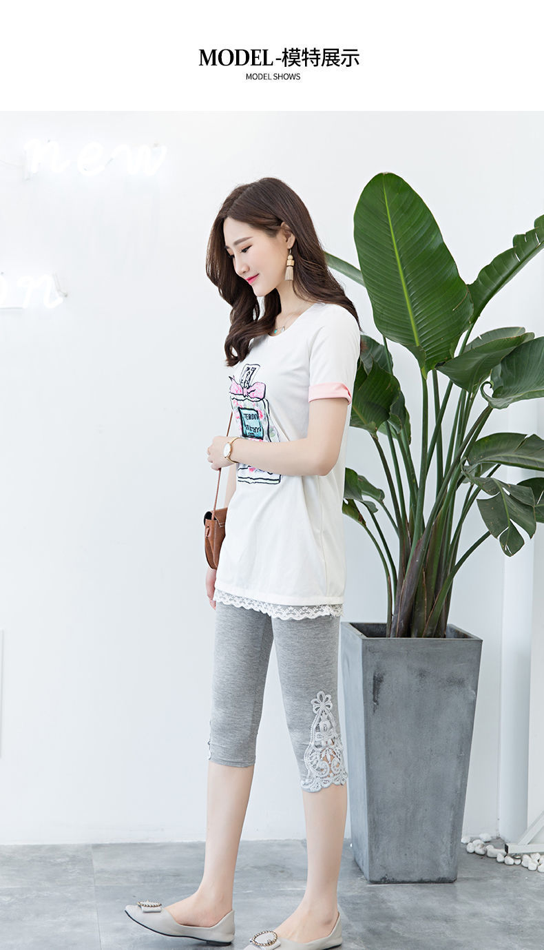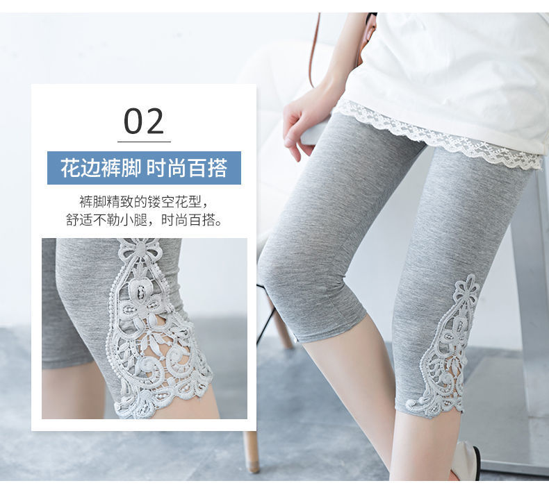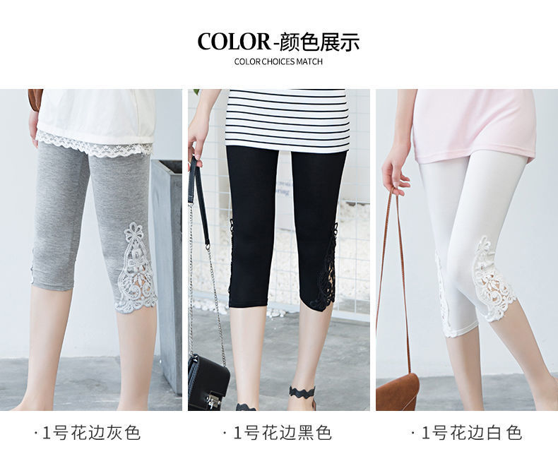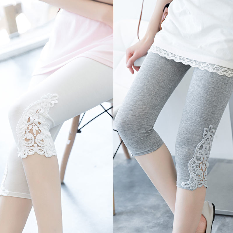 [Набор из двух частей] Кружевные леггинсы Женские тонкие летние эластичные узкие облегающие внутренние и верхняя одежда Брюки-капри Женские брюки