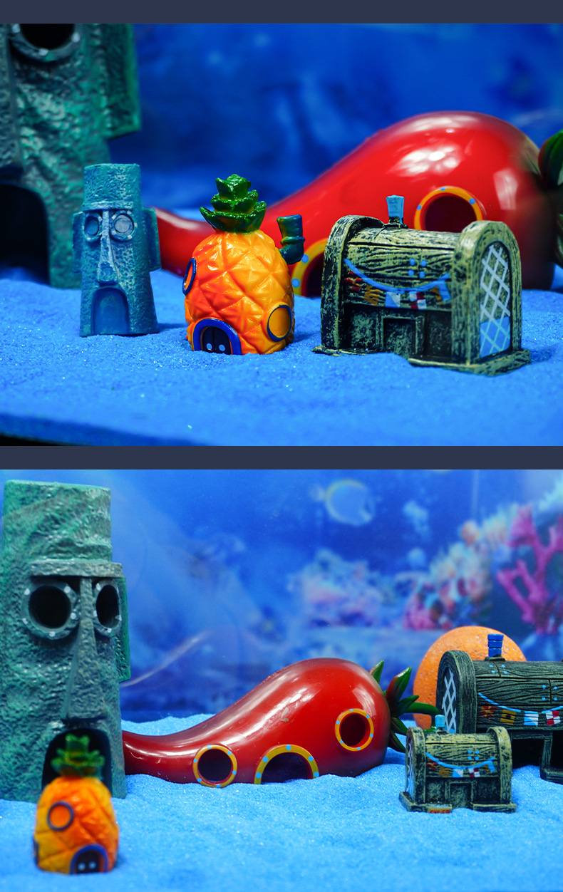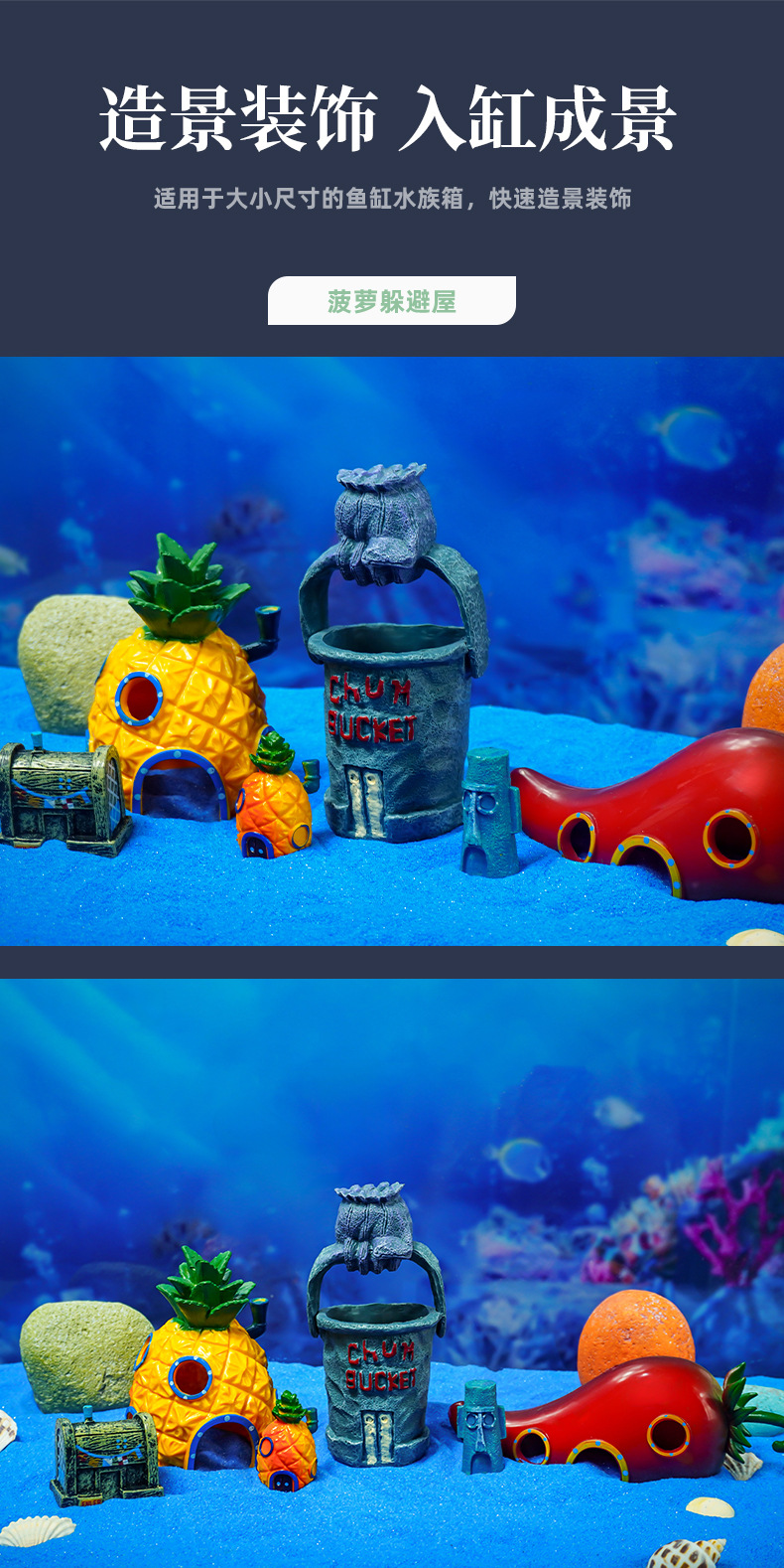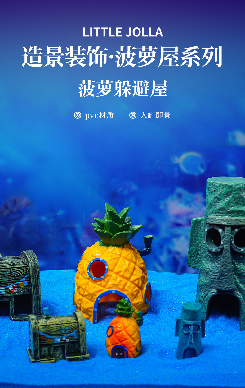 Набор для декора аквариума "Ананасовый домик-укрытие Губки Боба", украшения для аквариума, небьющиеся элементы декора.