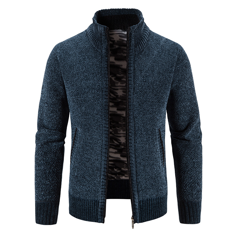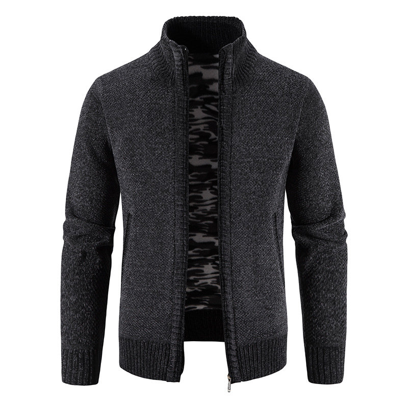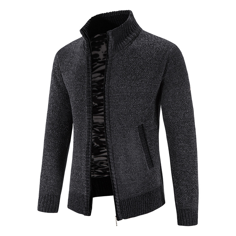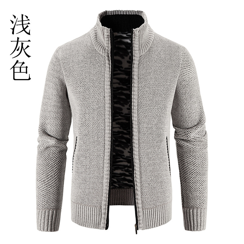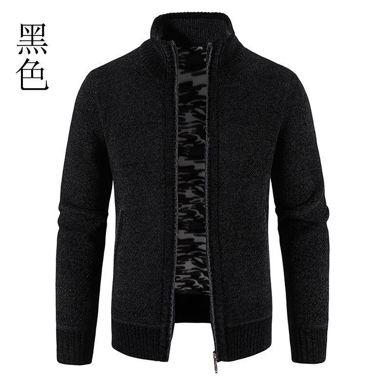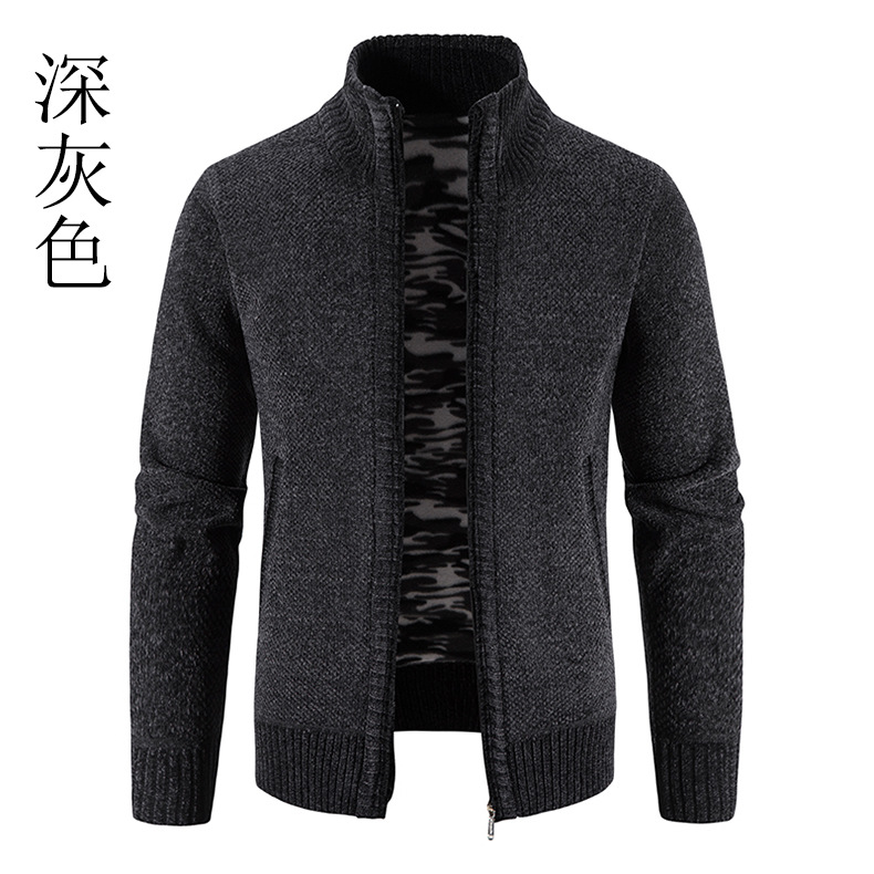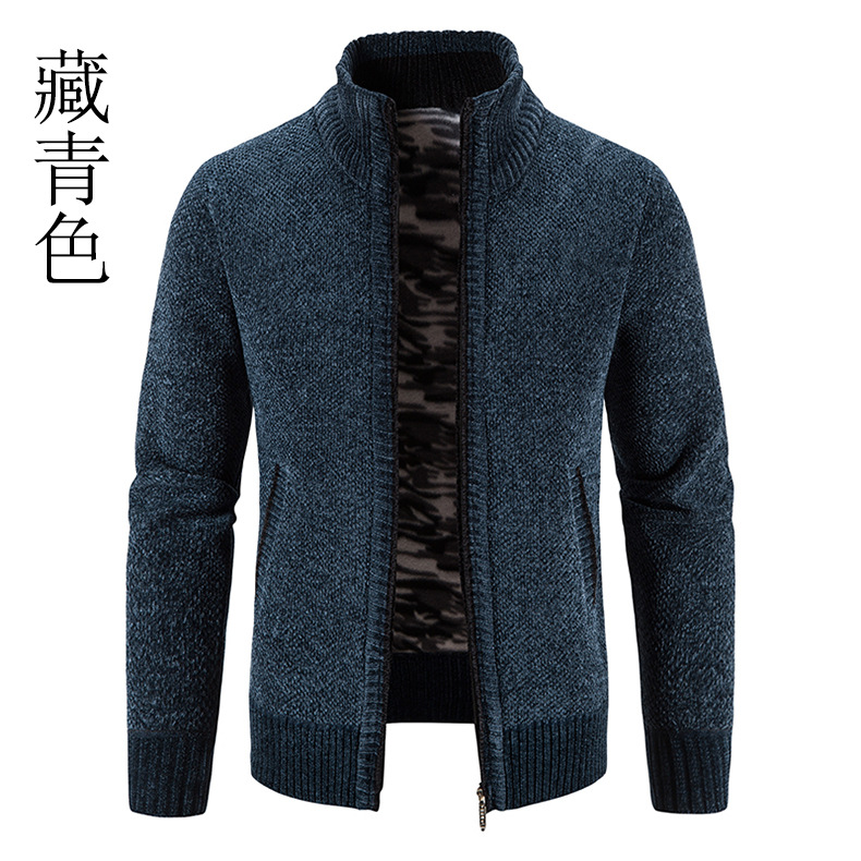 Мужская утепленная флисовая куртка-свитер большого размера на осень-зиму 2025 года с воротником-стойкой и застежкой-молнией для экспорта.