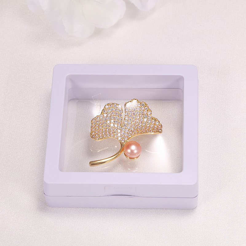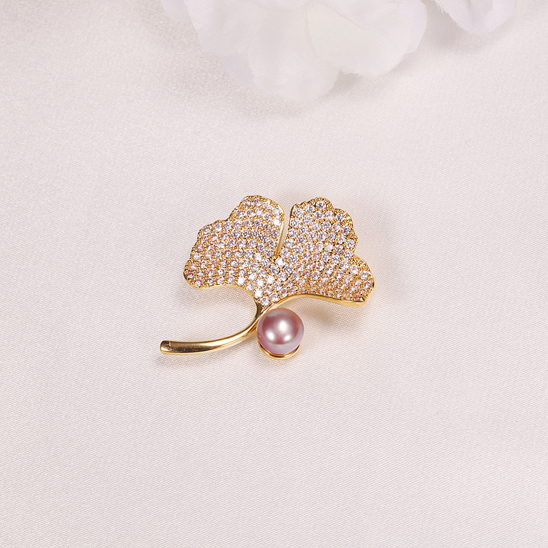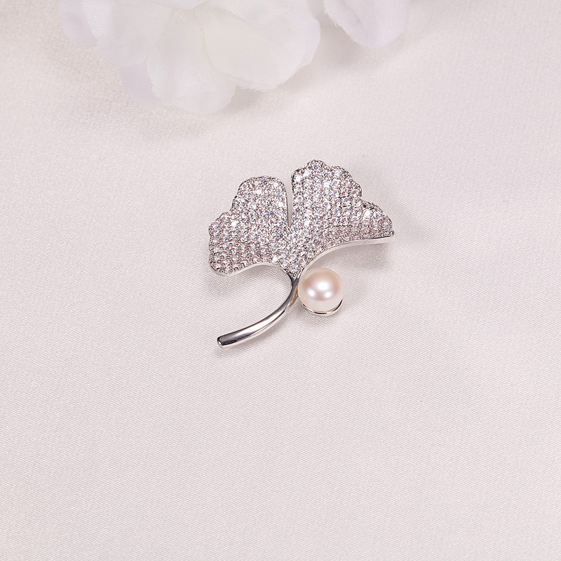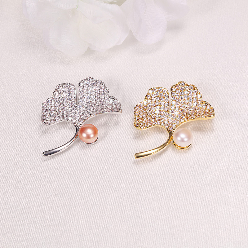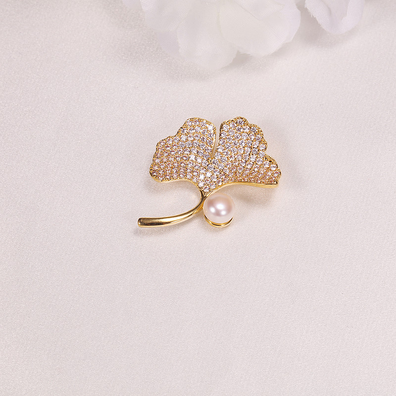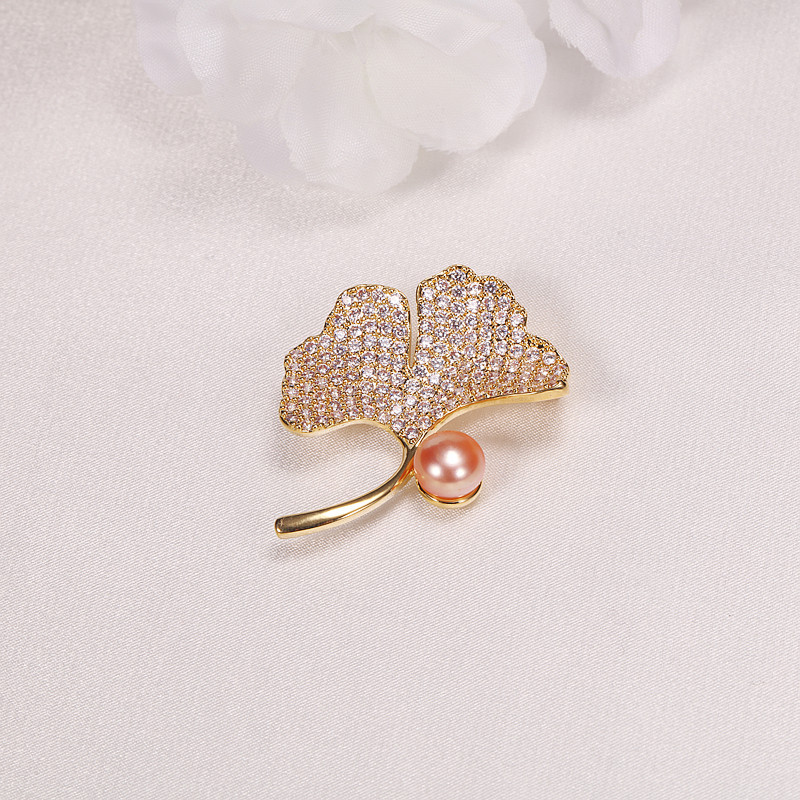 Брошь оптом, медная, позолоченная, с инкрустацией циркония, в форме абрикосового листа, с жемчужной булавкой, из пресноводного жемчуга, ювелирное украшение для женщин