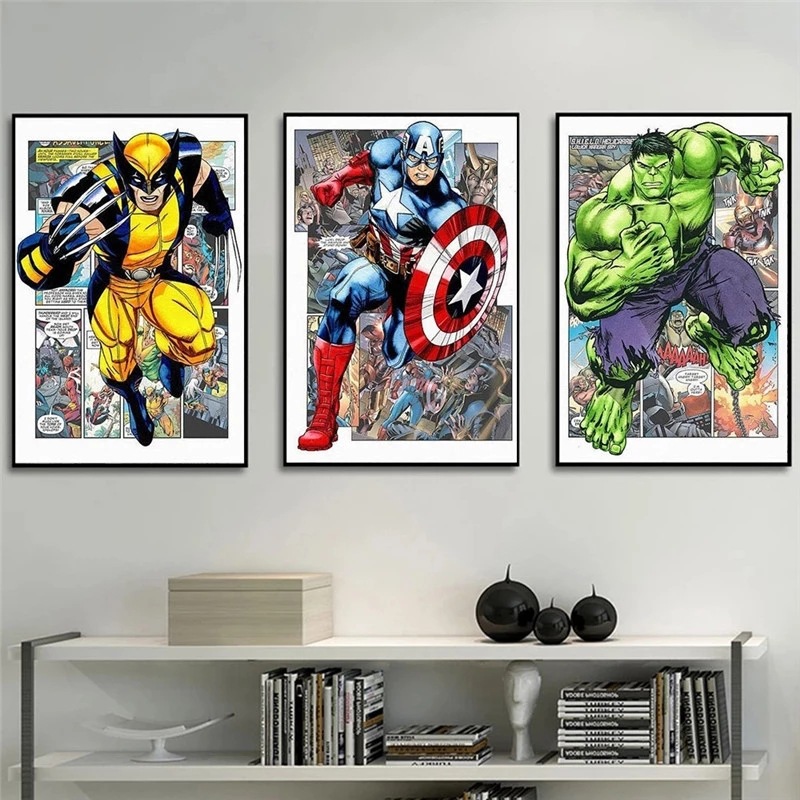 Мстители Комикс Плакат Человек-паук Капитан Америка Холст Живопись Печать Wall Art