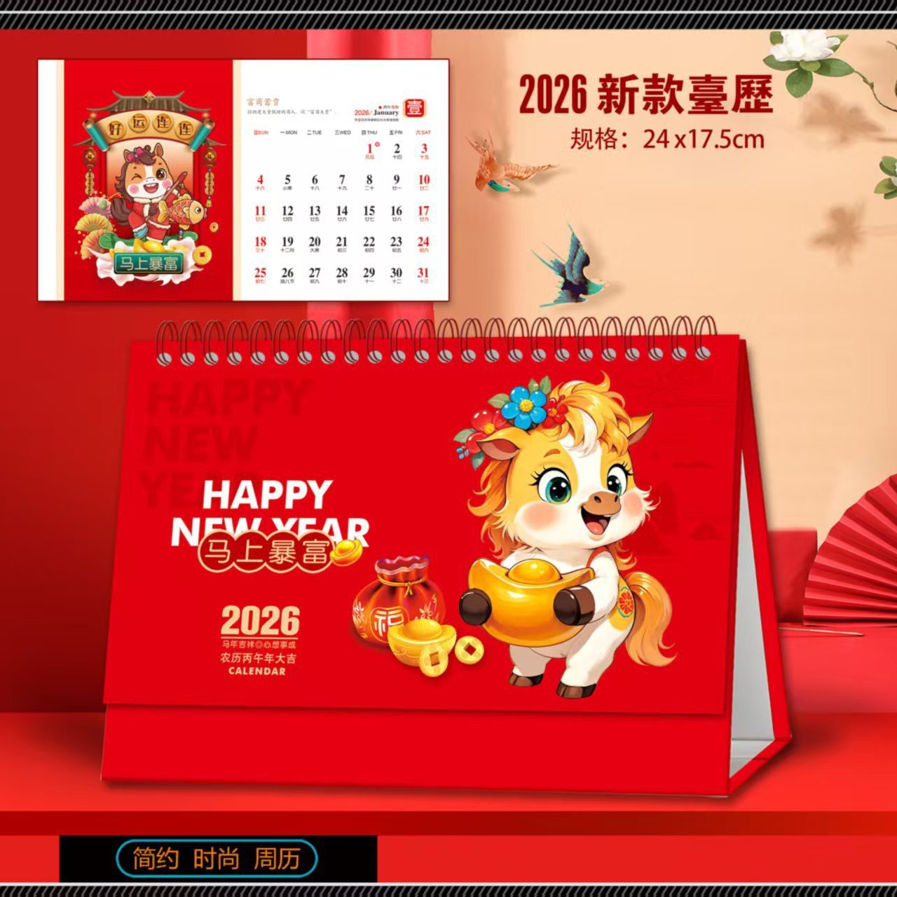 2026 простой рабочий настольный календарь в стиле ins, настольные украшения, ежемесячный календарь, мультяшный календарь года Кобылы, оптовая продажа