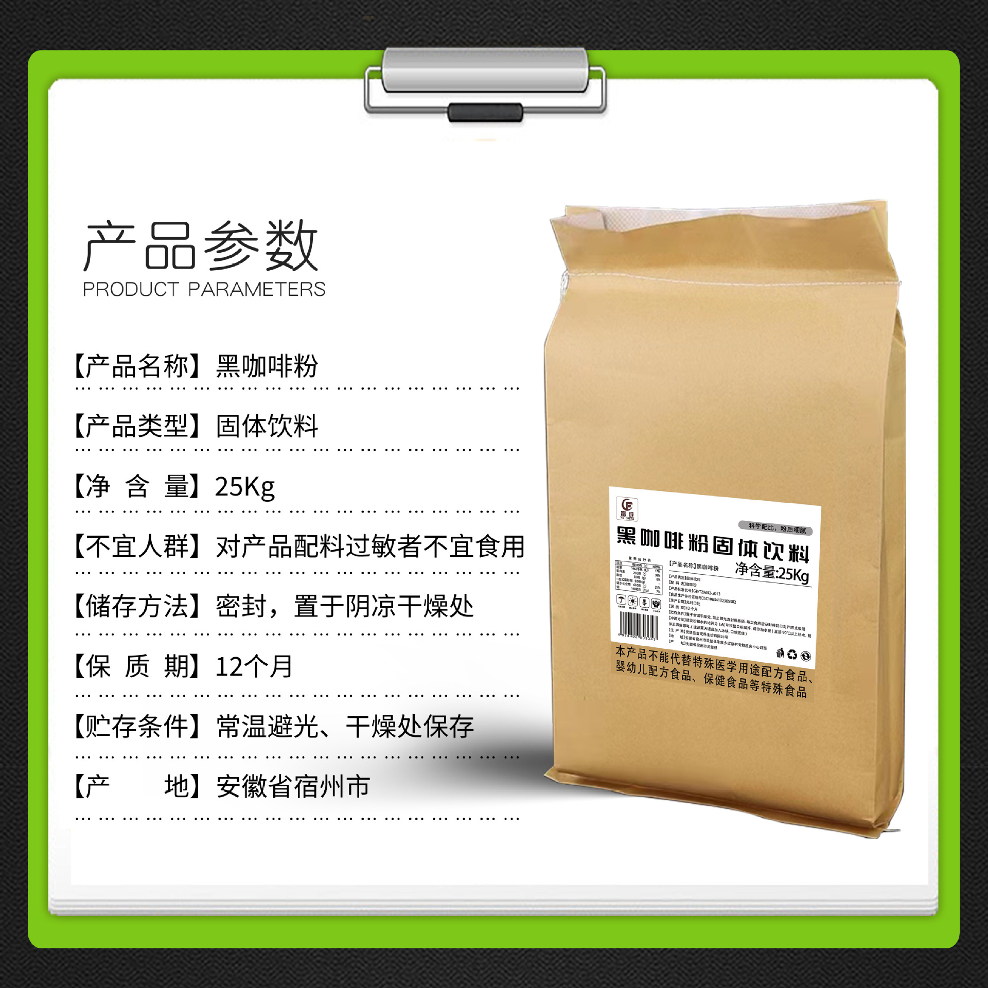 25 кг черного кофейного порошка