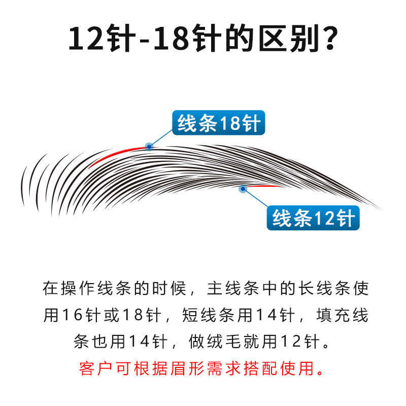 Полупостоянное лезвие иглы для вышивания 0.18 черная кожа 12/18 иглы для вышивания бровей ручная линия иглы для бровей