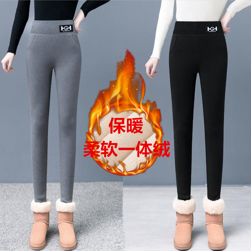 Толстые зимние комбинированные бархатные леггинсы женские наружные плюшевые толстые брюки женские высокие талии эластичные теплые брюки хлопковые брюки