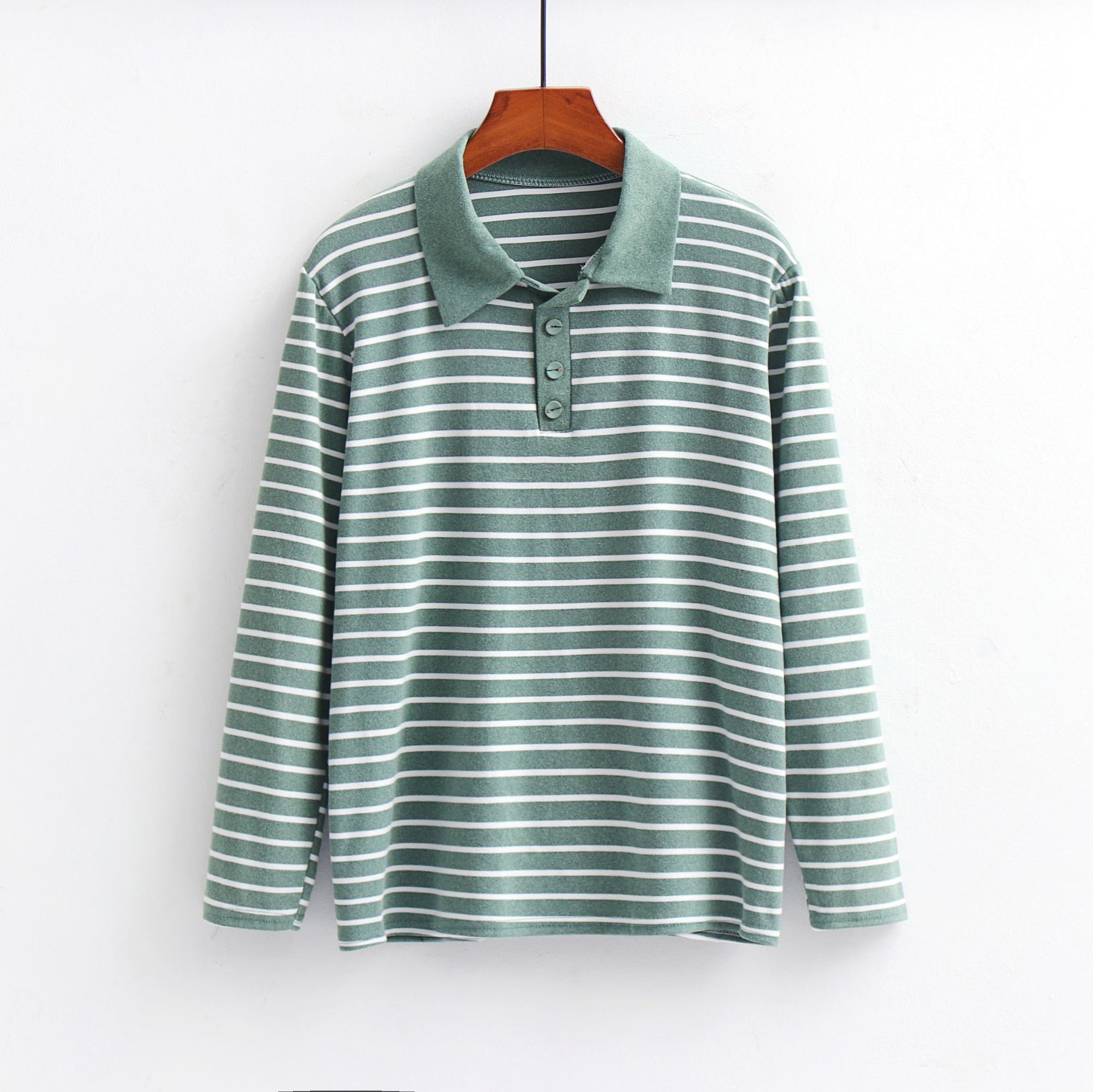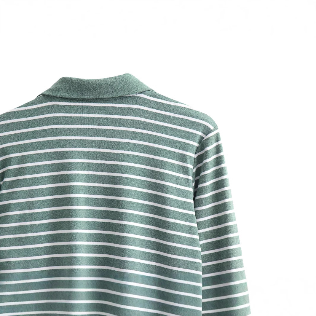 Одежда для женщин среднего и старшего возраста, одежда для бабушек, оптовая продажа женской одежды, хлопковая полосатая футболка с отложным воротником и длинным рукавом, повседневная