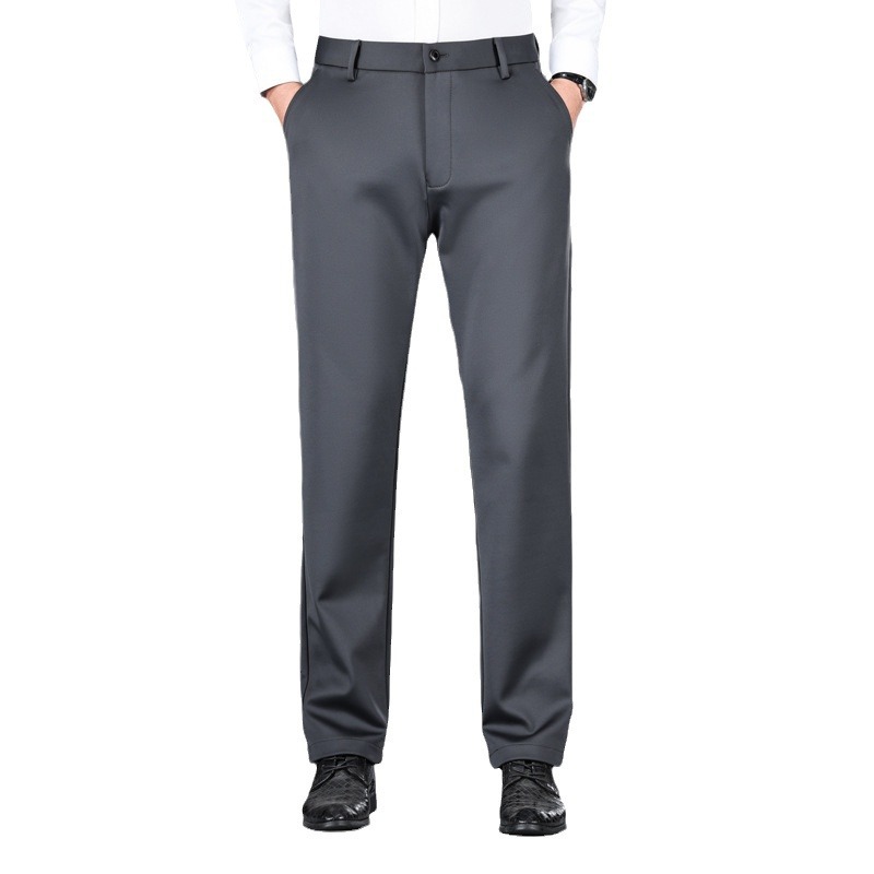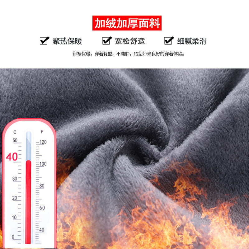 Осенние и зимние эластичные плюшевые брюки Мужские повседневные длинные брюки Мужские черные толстые свободные прямые деловые костюмы