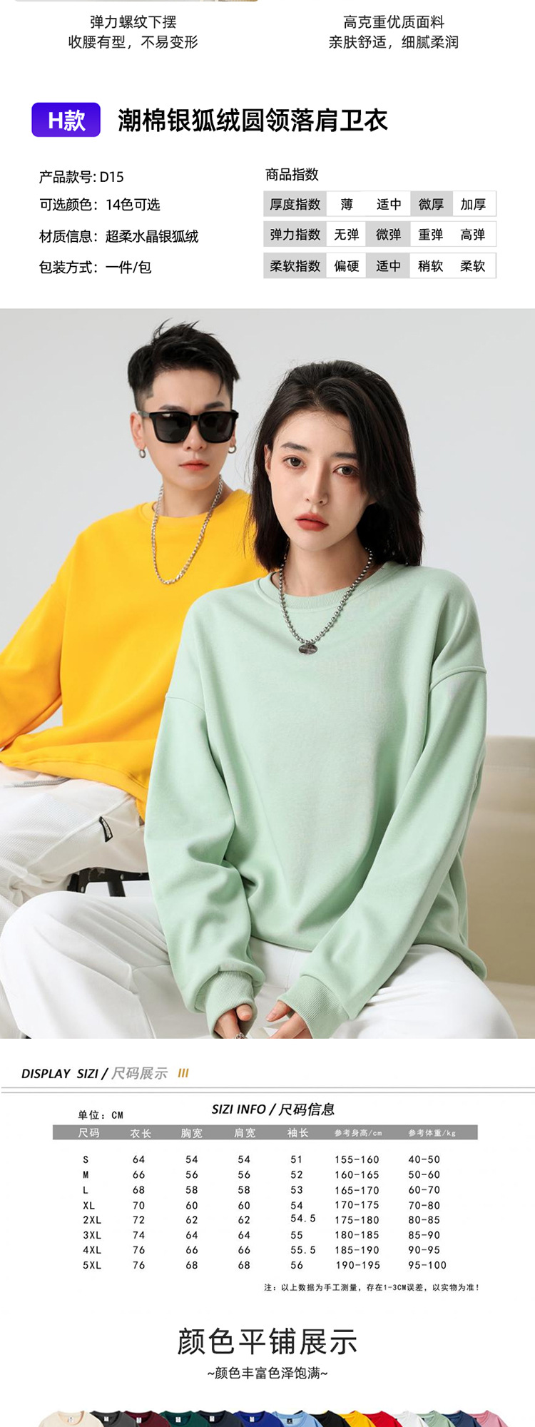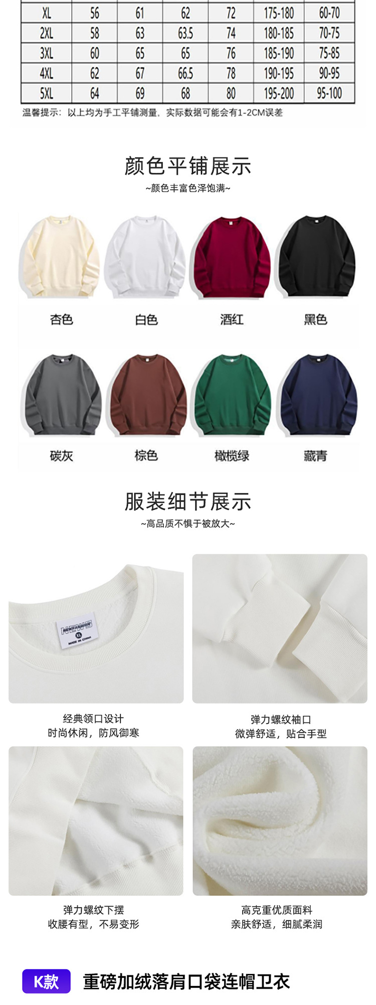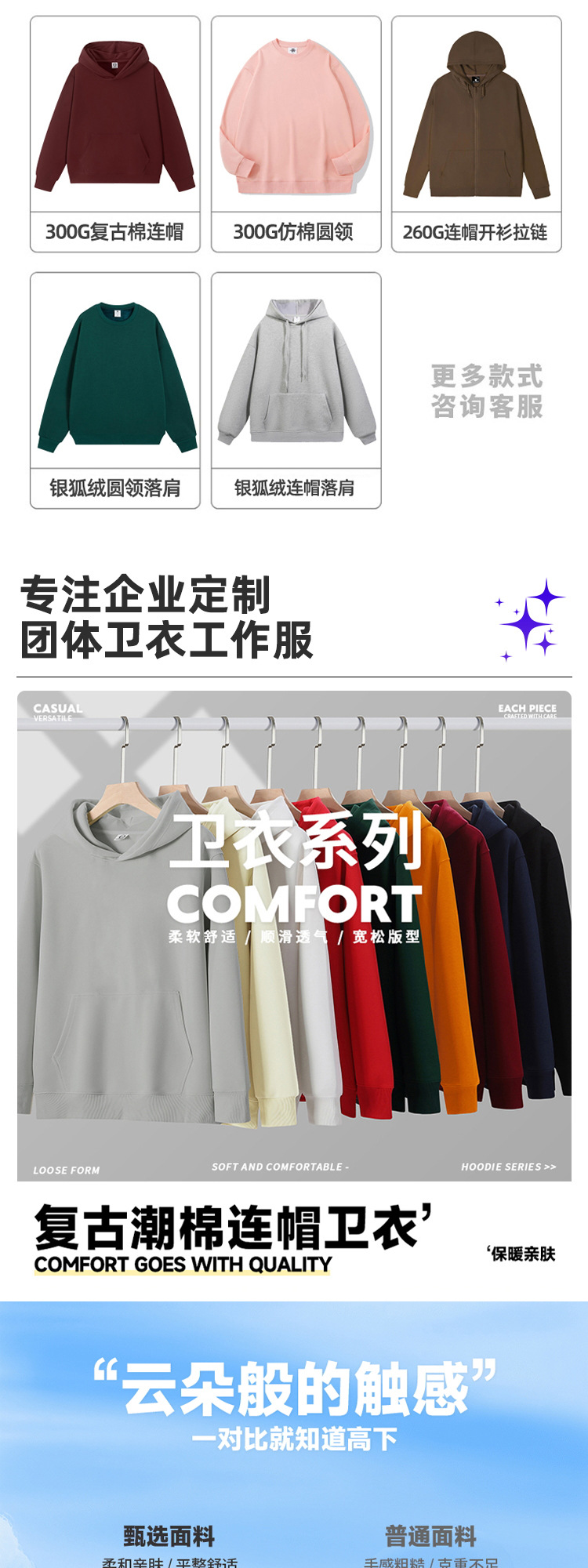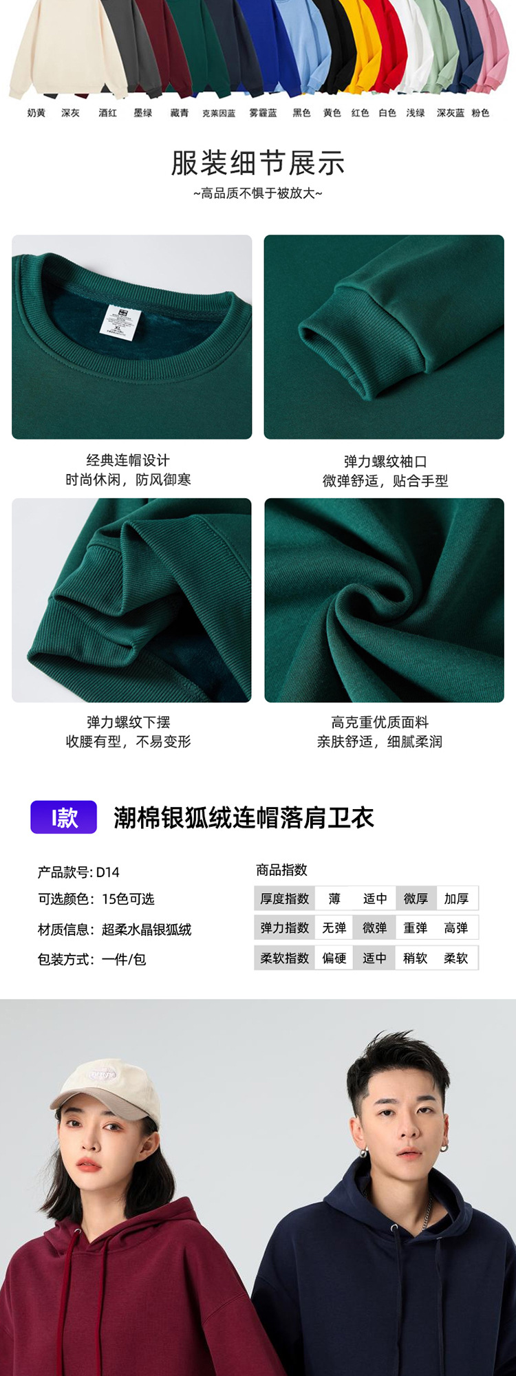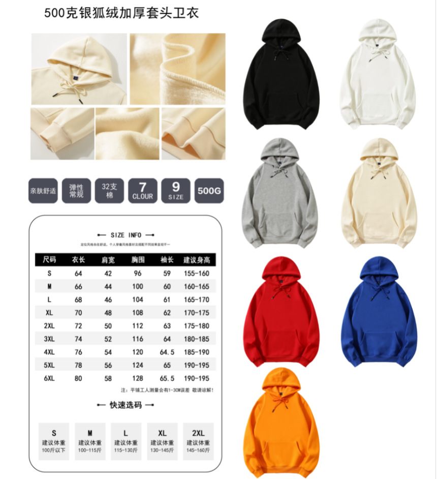 Тип A - Толстовка с капюшоном из твила, плотность 260 г/м² (подходит для температуры в помещении 12–20°C)℃); Тип B - толстовка с круглым вырезом из ткани твил, плотность 260 г/м² (подходит для температуры в помещении 12–20°C)℃); Толстовка из твила с молнией типа C, плотность 260 г/м² (подходит для температуры в помещении 12–20 °C).℃); Тип D — модный хлопковый свитшот в стиле ретро с круглым вырезом, 300 г (подходит для температуры в помещении 10–18°С).℃); Тип E - Хлопковая толстовка с капюшоном в стиле ретро, 300 г (подходит для температуры в помещении 10–18°С). ℃ ); Толстовка из хлопка с капюшоном в стиле ретро, 350 г.; Свитшот G Style из серебристого велюра с молнией, рукава реглан, плотность 400 г.; Стиль H — флисовая толстовка с круглым вырезом и подкладкой из серебряного лисьего велюра (подходит для температуры в помещении 15°C).℃до -5℃); Тип I — толстовка из флиса с капюшоном и подкладкой из флиса серебряной лисы (подходит для температуры в помещении 15°C/59°F)℃до -5℃); Толстовка из утолщенного кашемира с круглым вырезом в стиле J; Толстовка с капюшоном из утолщенного кашемира в стиле K; Толстовка с капюшоном из бархатного материала "серебряная лиса", размер L, 500 г; Модель M, 250 г, длинные рукава реглан из чистого хлопка; N стиль, 230 г, длинные рукава из чистого хлопка с резьбой