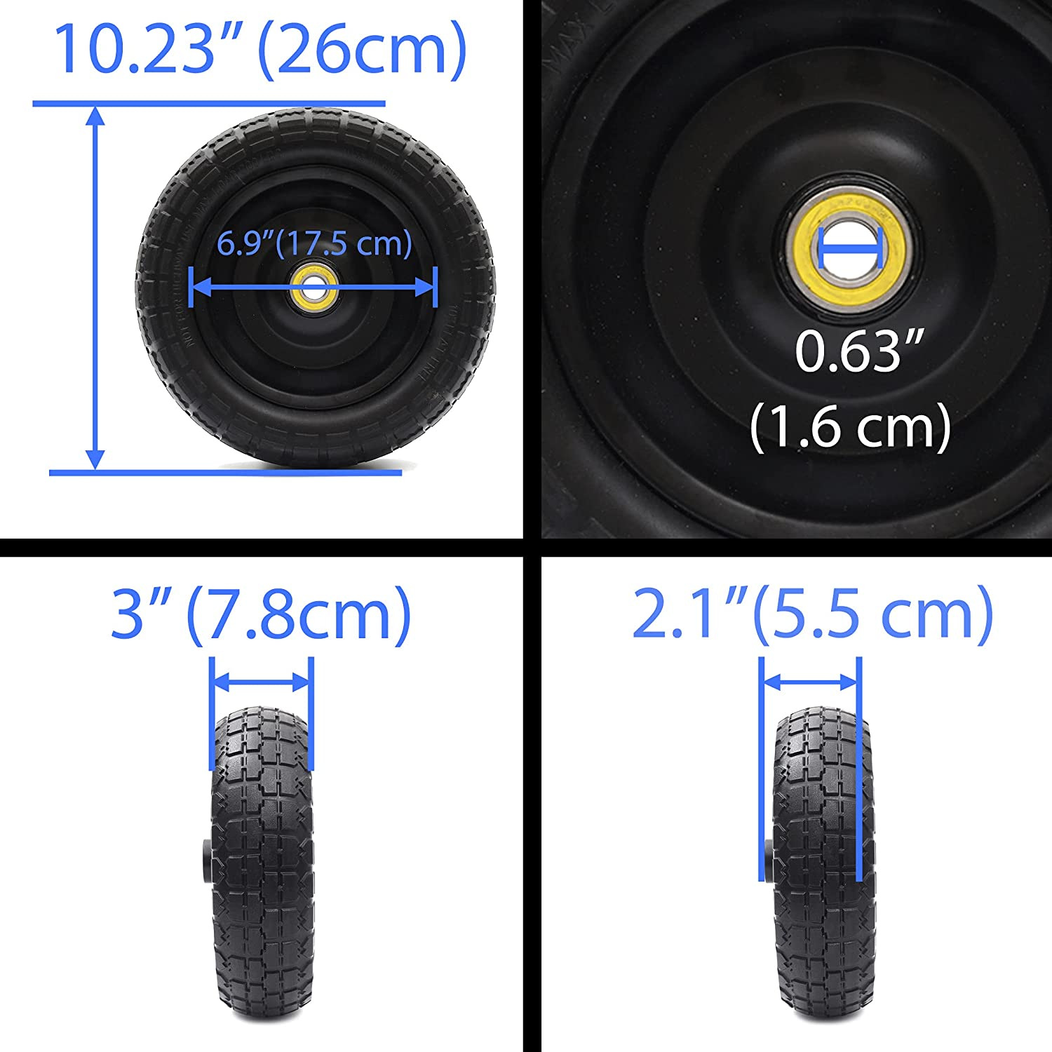 Твердое ненадувное колесо из пенополиуретана, автомобиль для садовых инструментов, 10 дюймов, износостойкая полиуретановая шина, универсальное колесо