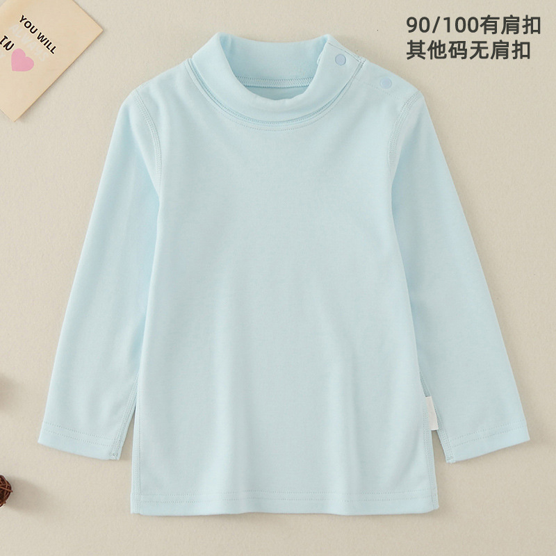 Детская Базовая рубашка из чистого хлопка класса А, футболка с высоким воротником и длинным рукавом для мальчиков и девочек, внутренняя одежда для малышей, осенне-зимний теплый топ, нефлуоресцентный