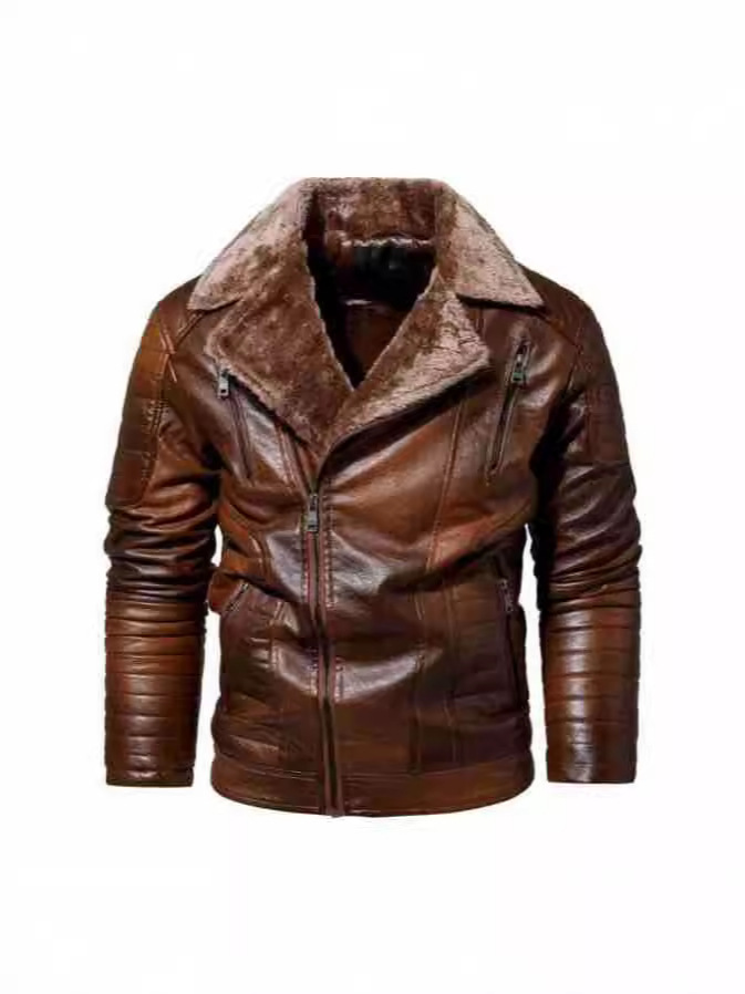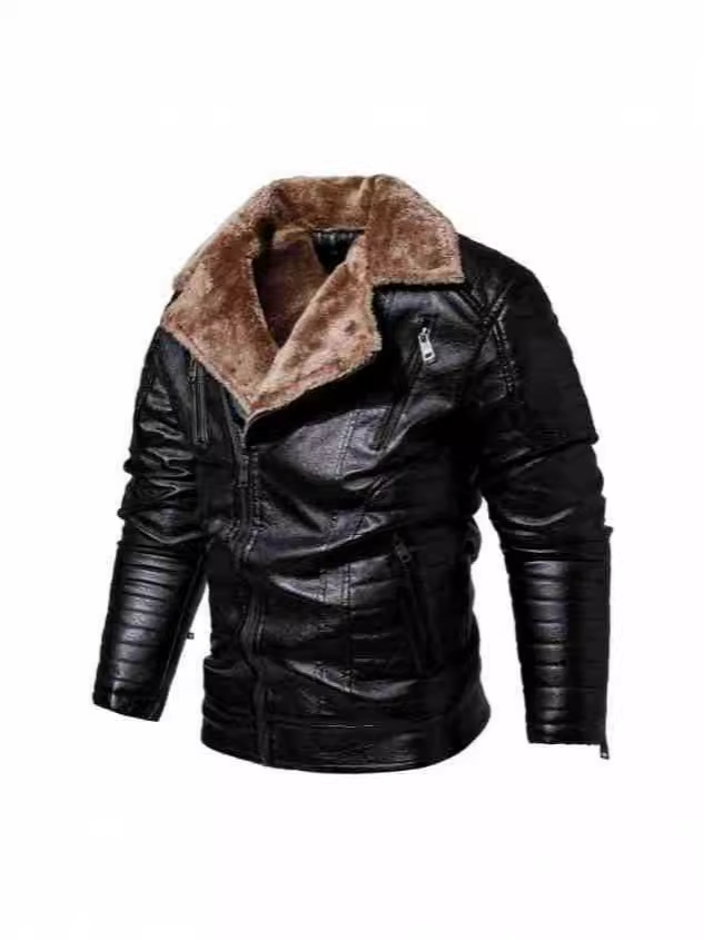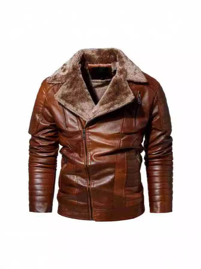 Мужская кожаная куртка из искусственной кожи с меховой подкладкой для зимы, европейский и американский стиль, большие размеры, для трансграничной торговли на Amazon