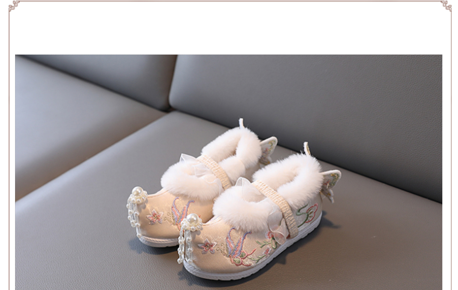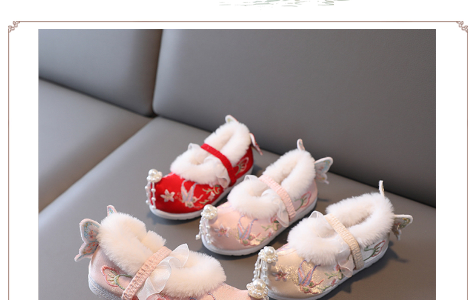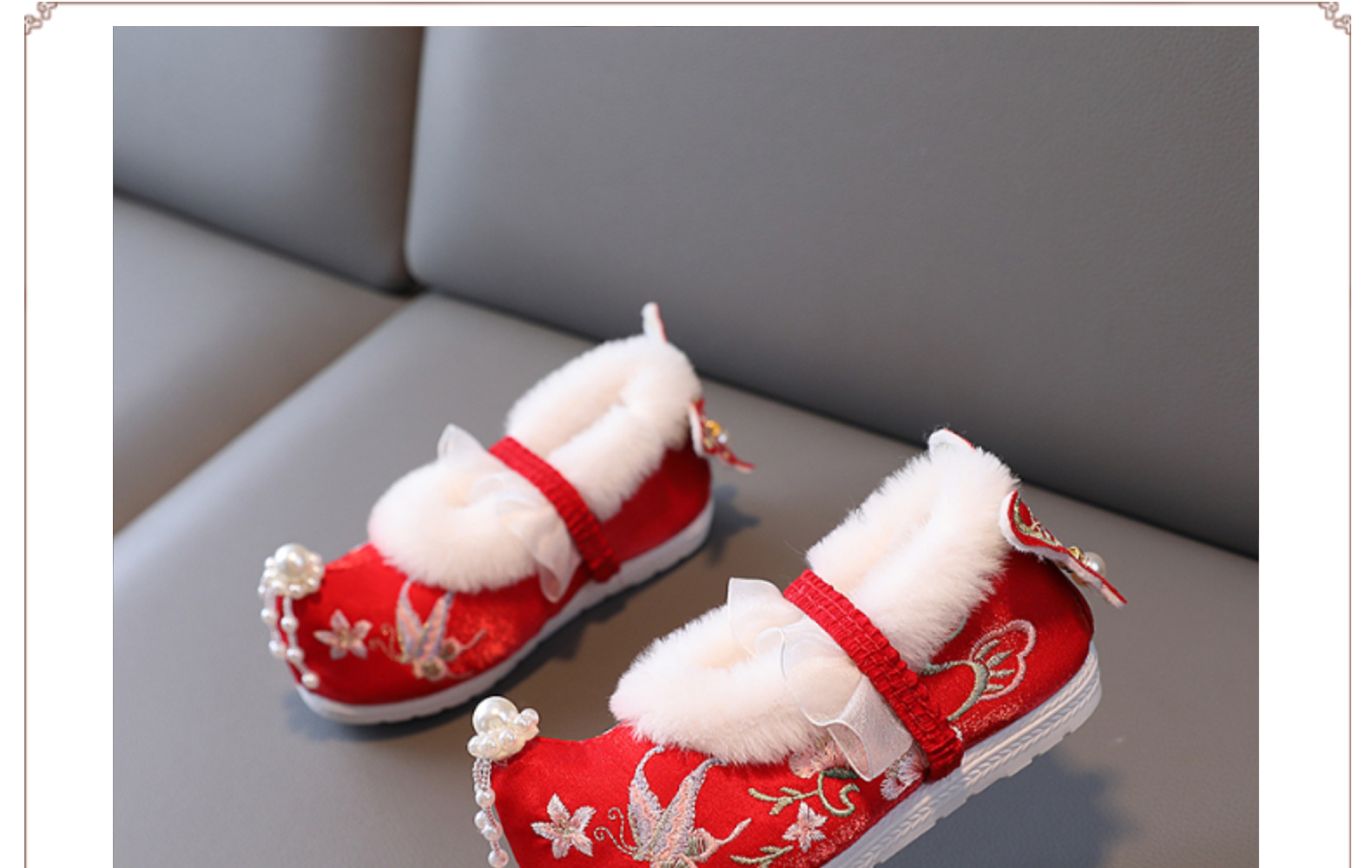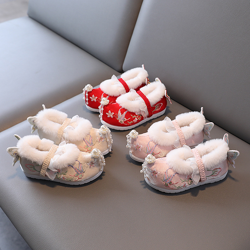 Детская обувь с вышивкой, обувь ханьфу для девочек, зимняя обувь на флисовой подкладке, утепленная обувь из большого хлопка, танцевальная обувь для девочек в китайском стиле