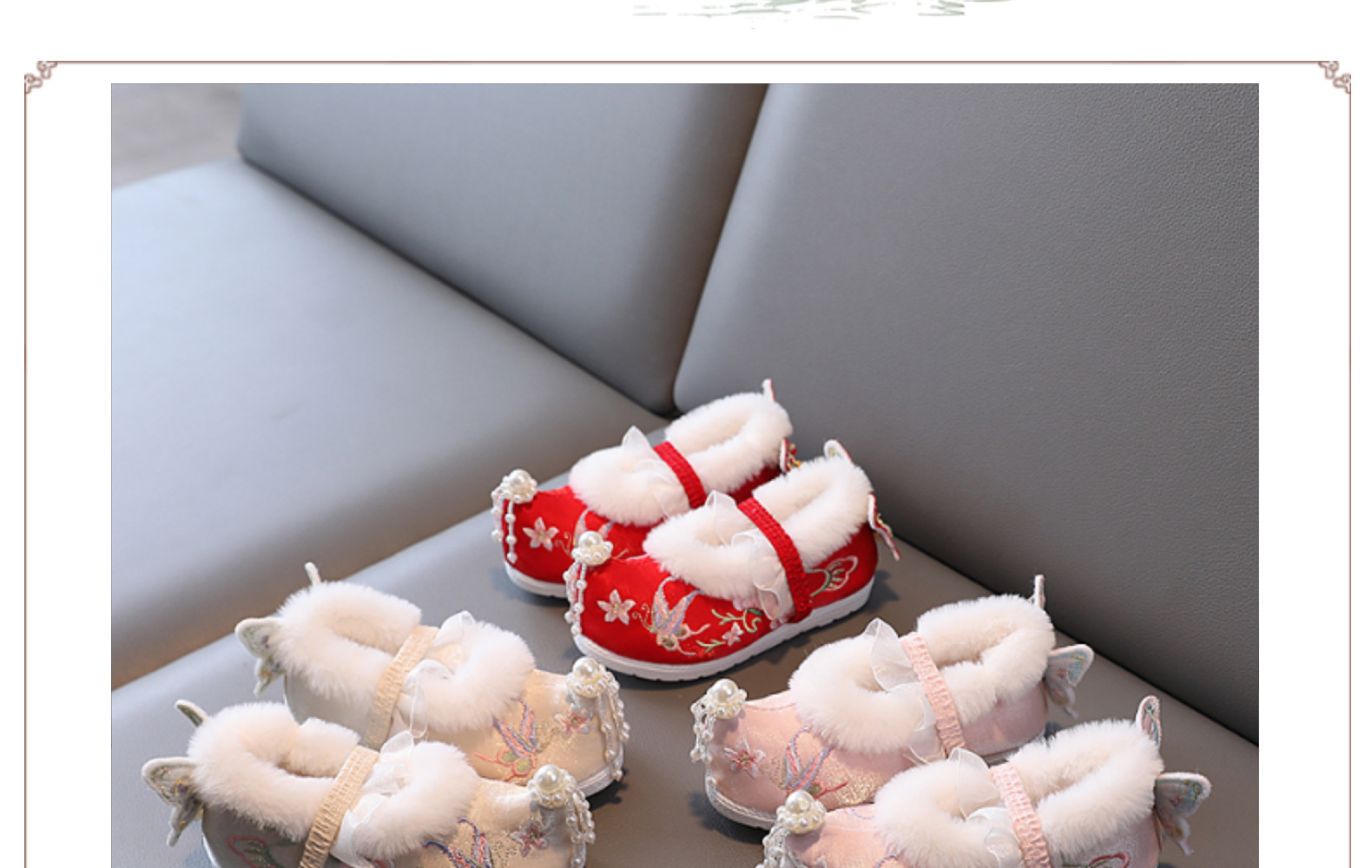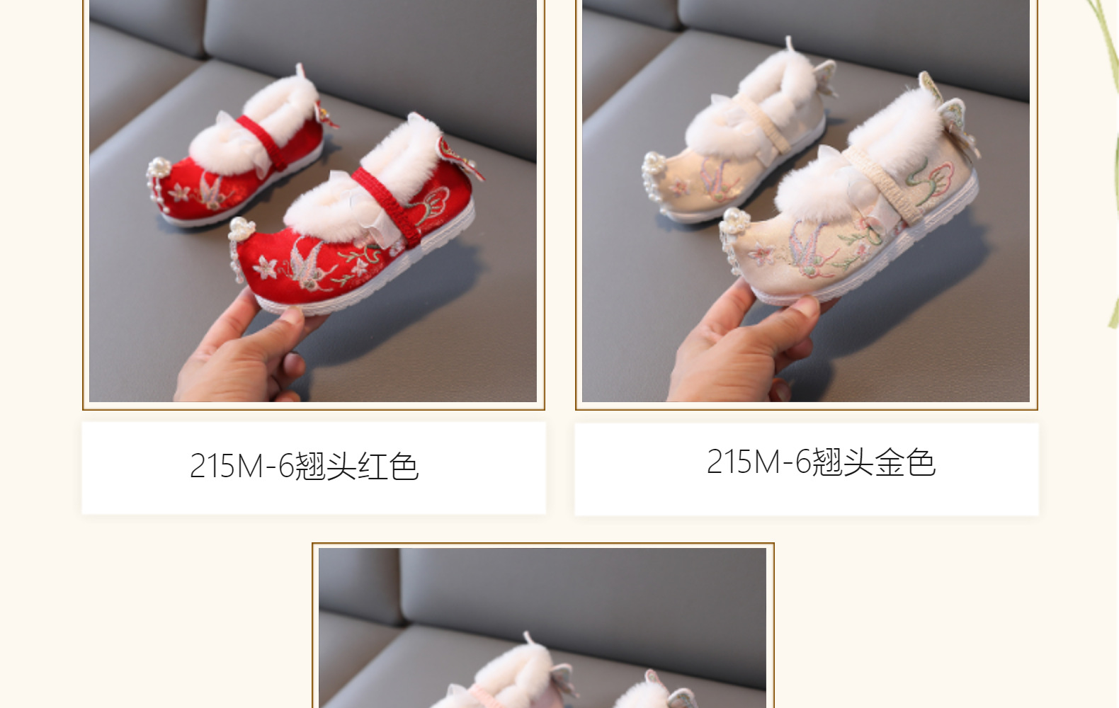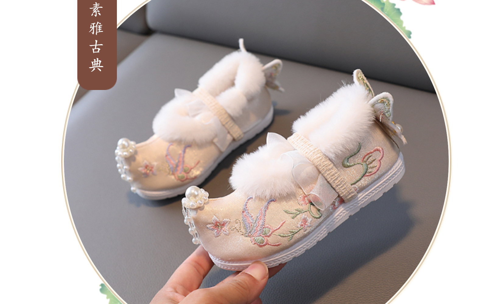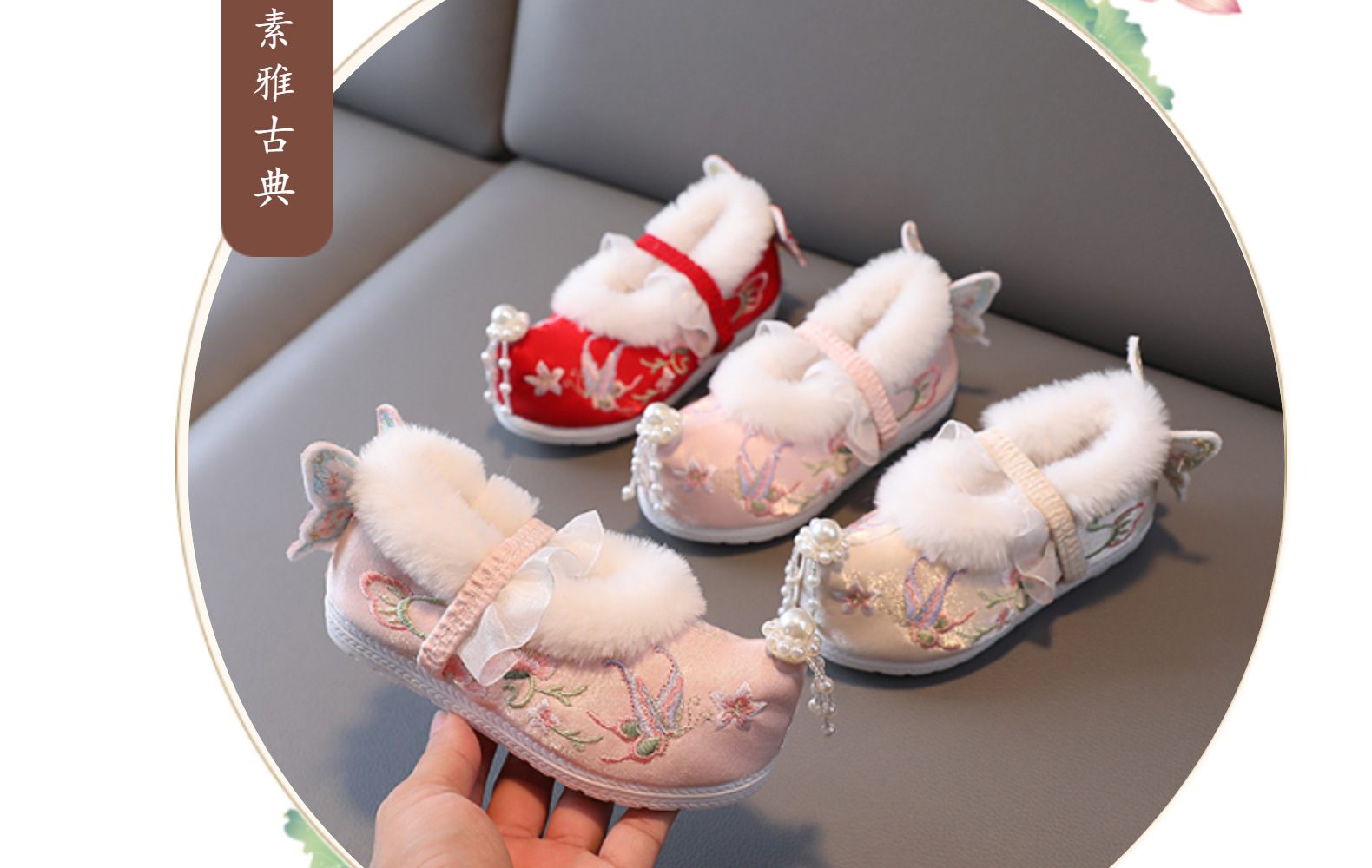 Детская обувь с вышивкой, обувь ханьфу для девочек, зимняя обувь на флисовой подкладке, утепленная обувь из большого хлопка, танцевальная обувь для девочек в китайском стиле