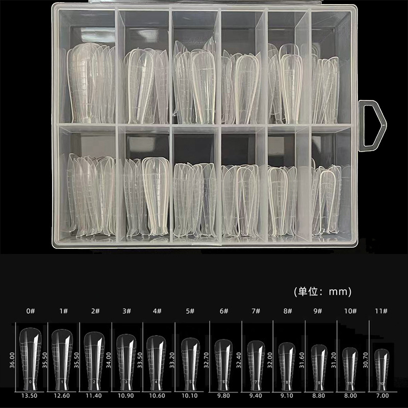 Белая коробка, 100 шт./кор. модели ногтей; 100 шт. 01 жесткая коробка, полипропиленовая форма для ногтей; 120 шт. 02 форма для наращивания ногтей с длинной плоской головкой; 120 шт. 03 форма для наращивания ногтей с каплями воды; 120 шт. форма для ногтей 04; 120 шт. 05 длинных французских бамбуковых трубок для наращивания ногтей; 120 шт. форма для ногтей 06; 120 шт. 07 длинная коническая форма для наращивания ногтей; 120 шт. форма для ногтей 08; Пакет 10 шт./пакет