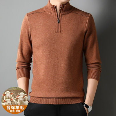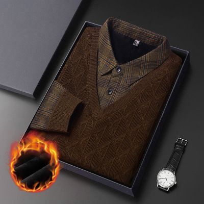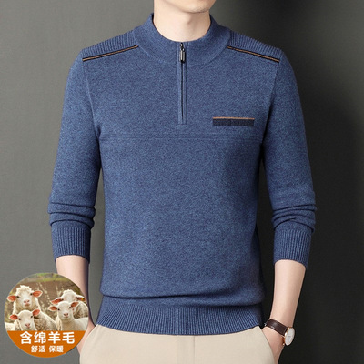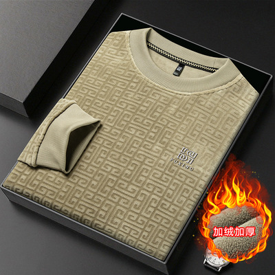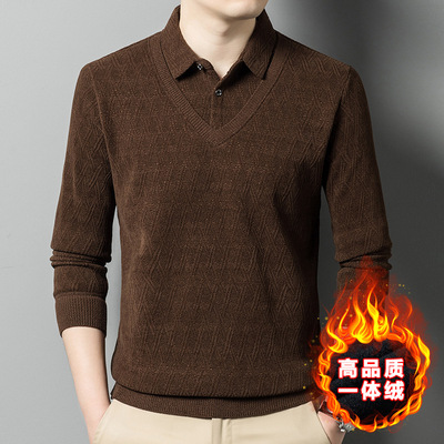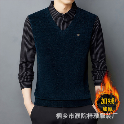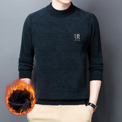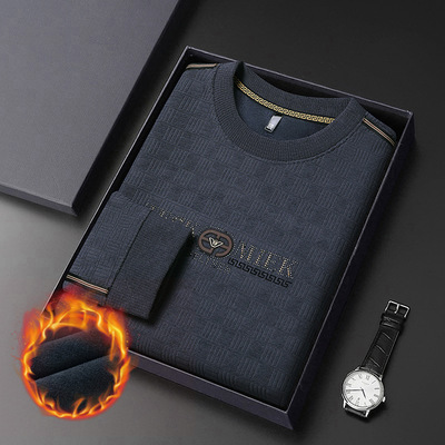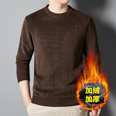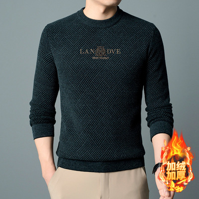Заводские прямые волосы, зимний мужской утолщенный трикотаж из синели, повседневная жаккардовая Базовая рубашка для среднего возраста с круглым вырезом, свитер