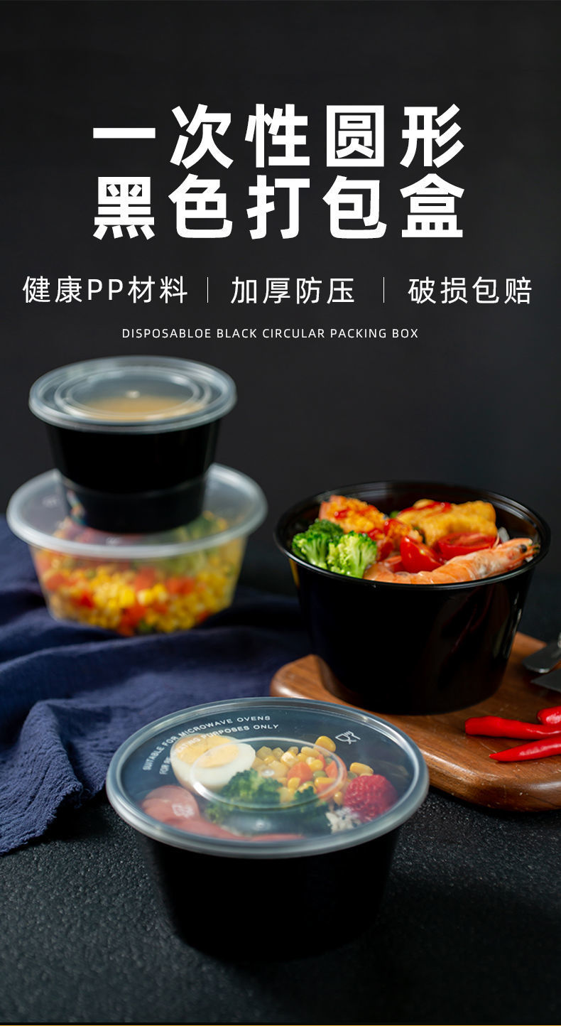 Утолщенные одноразовые черные контейнеры для еды, ланч-боксы на вынос, посуда, круглые и прямоугольные пластиковые контейнеры оптом