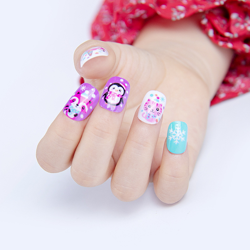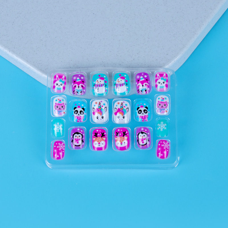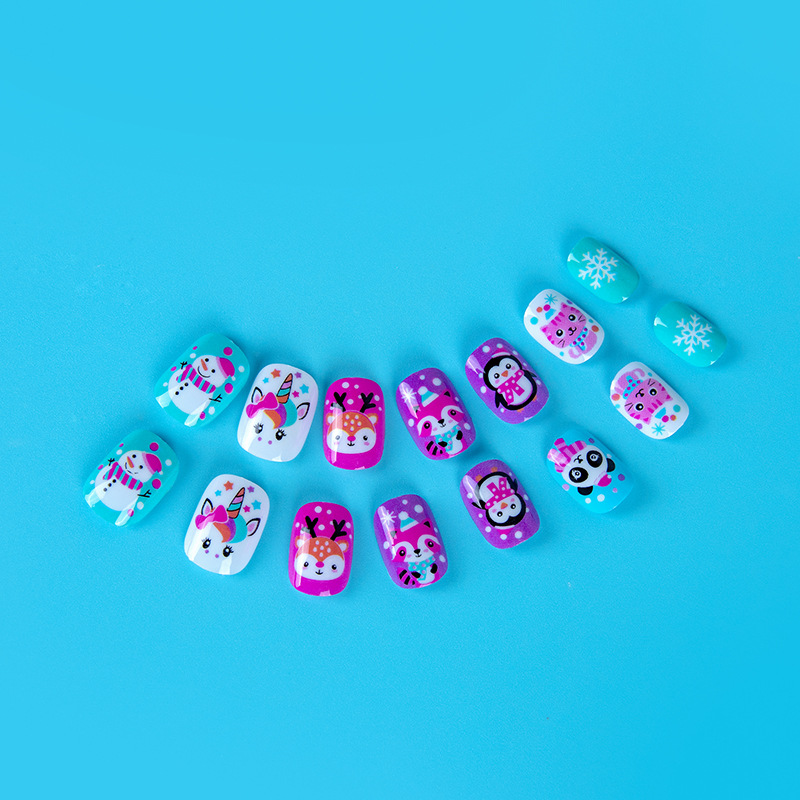 Индивидуальные рождественские детские накладные ногти с картинками и образцами, короткие ногти с лаком, накладные ногти с рисунком на клейкой основе.