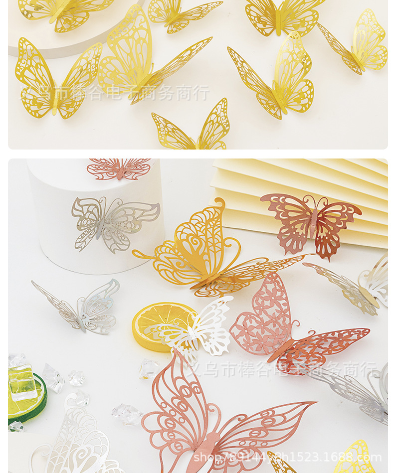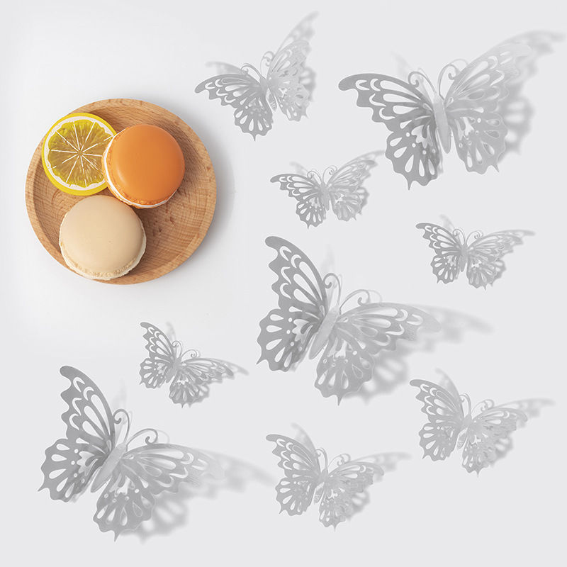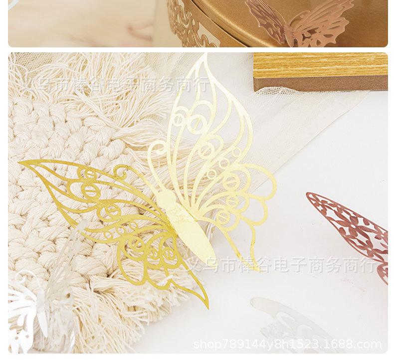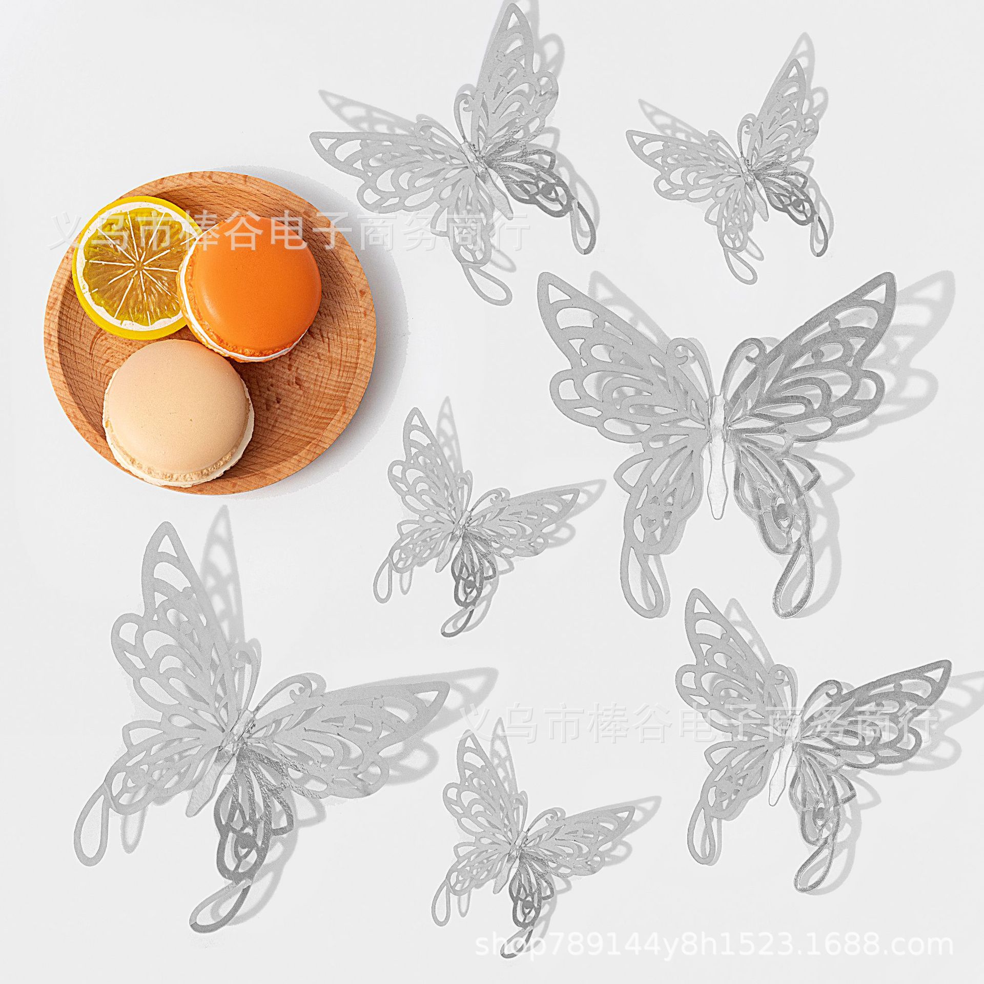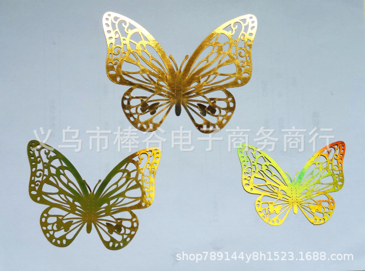 Золотая и серебряная полая трехмерная бабочка 3D настенная наклейка имитация Двусторонняя декоративная бабочка металлическая текстура