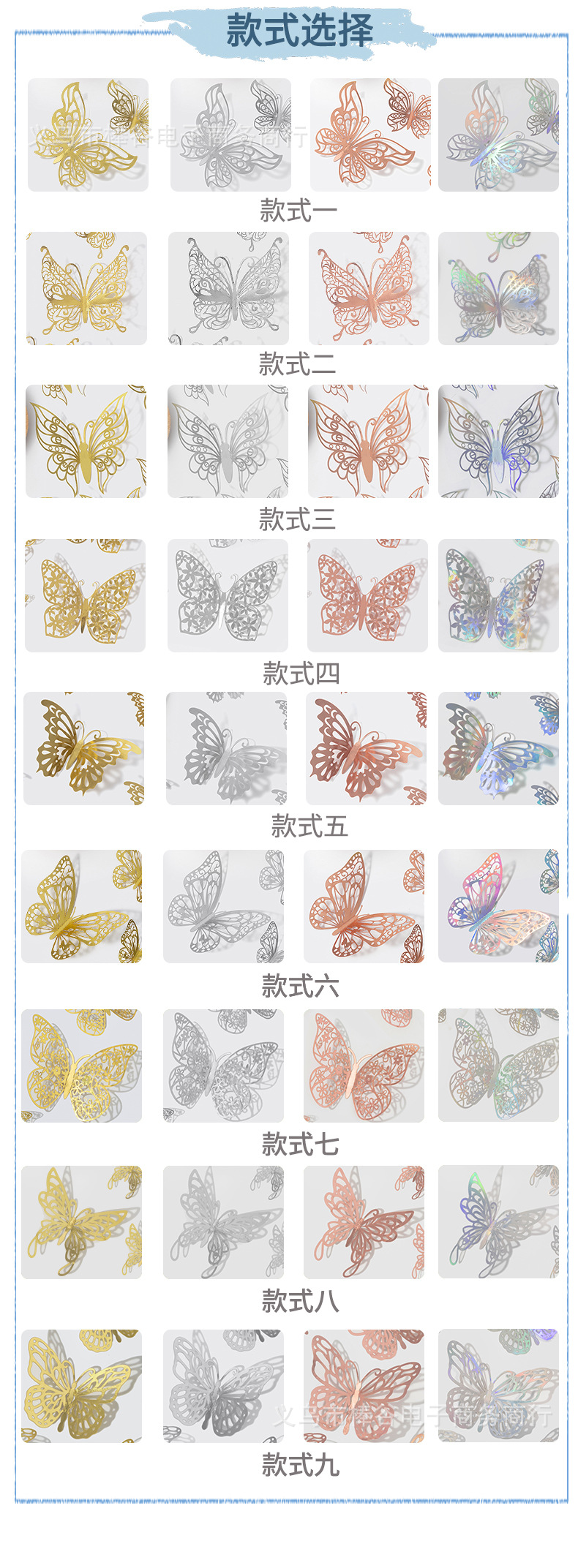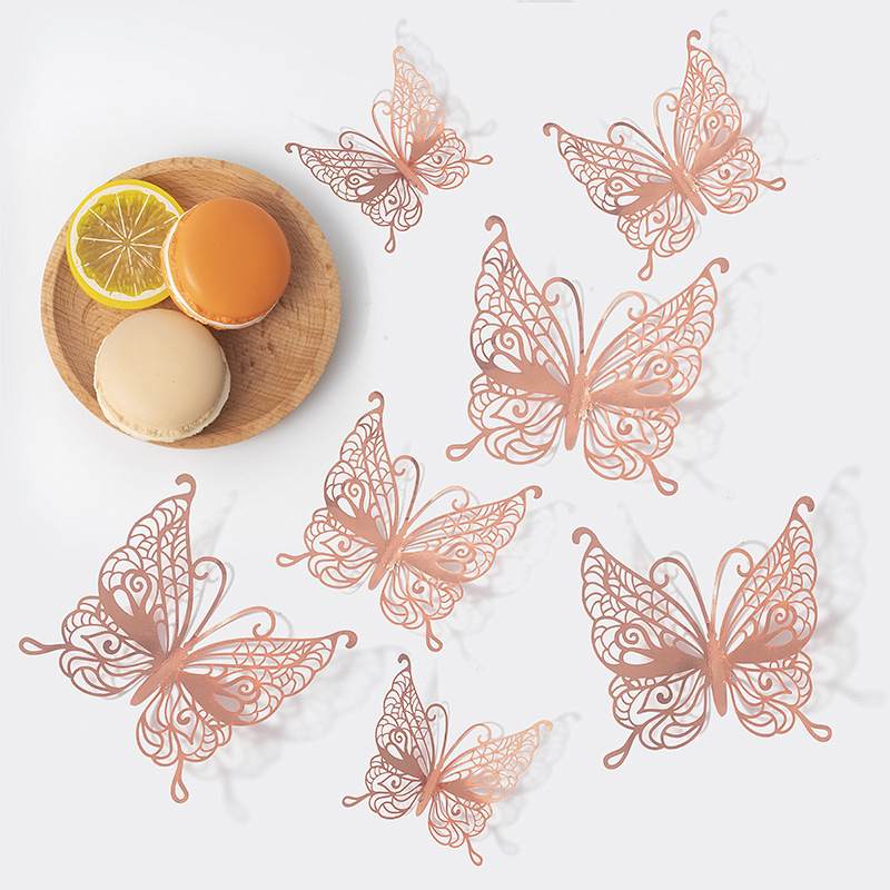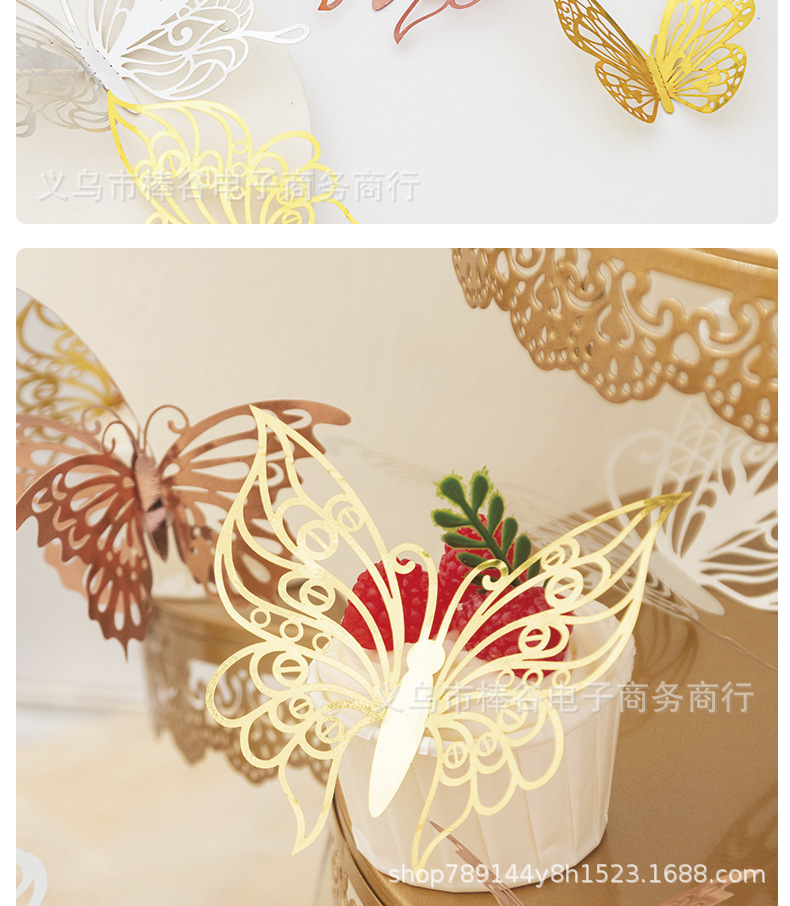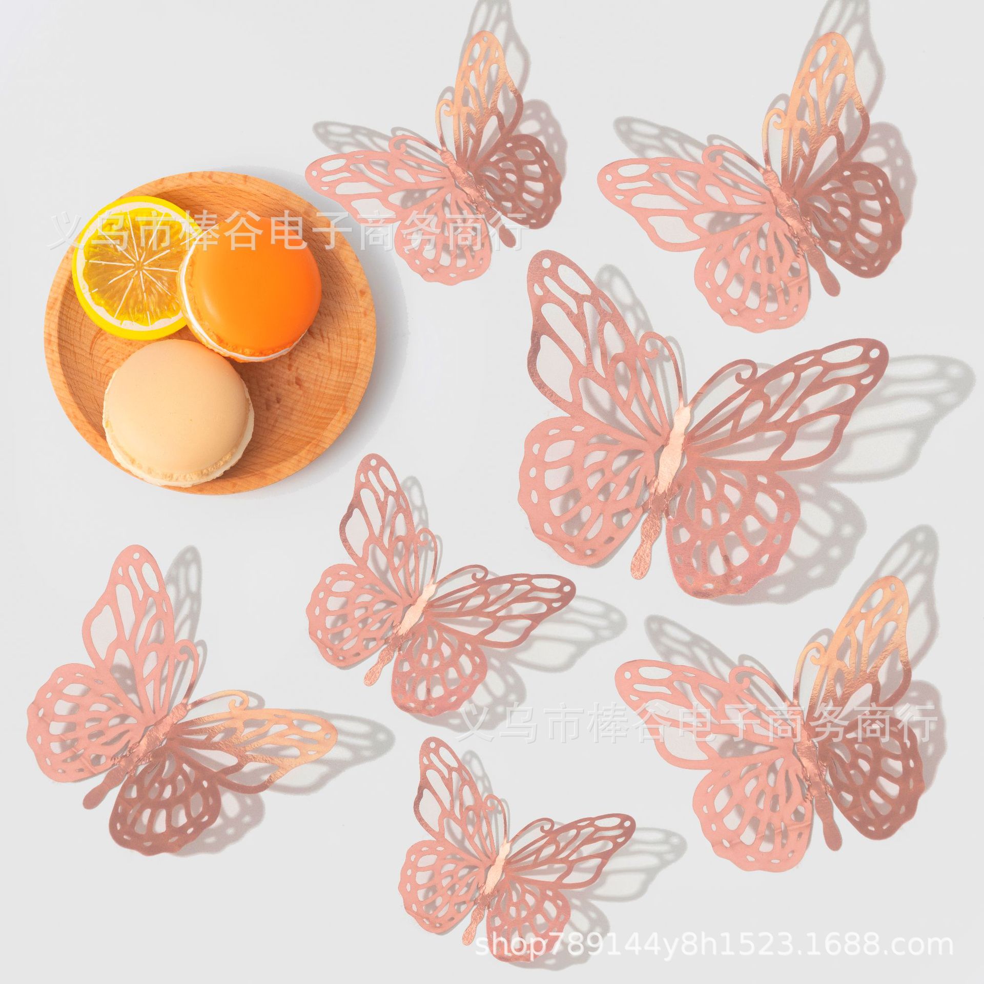 Золотая и серебряная полая трехмерная бабочка 3D настенная наклейка имитация Двусторонняя декоративная бабочка металлическая текстура