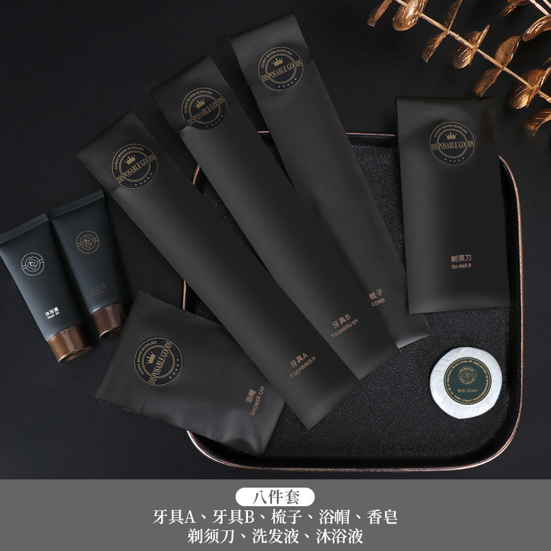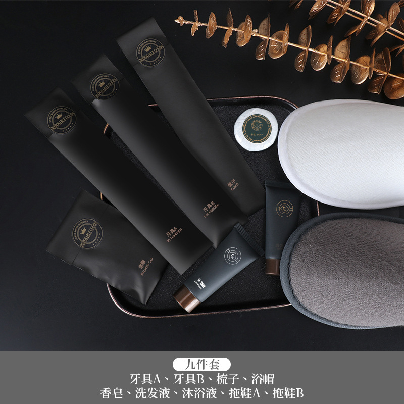 Зубные инструменты A; Зубные инструменты B; Тапочки A; Тапочки B; Шампунь; Гель для душа; Расческа; Мыло; Шапочка для душа; Бритва; Сумка для ухода; Набор из семи частей; Набор из восьми частей; Набор из девяти частей; Набор из десяти предметов