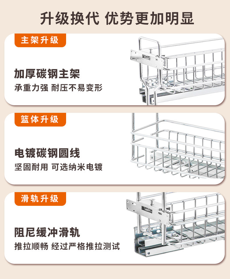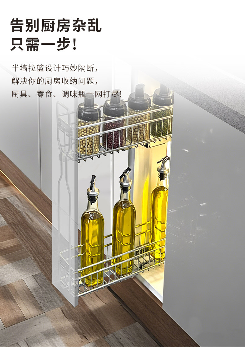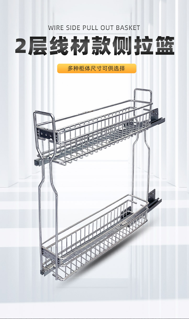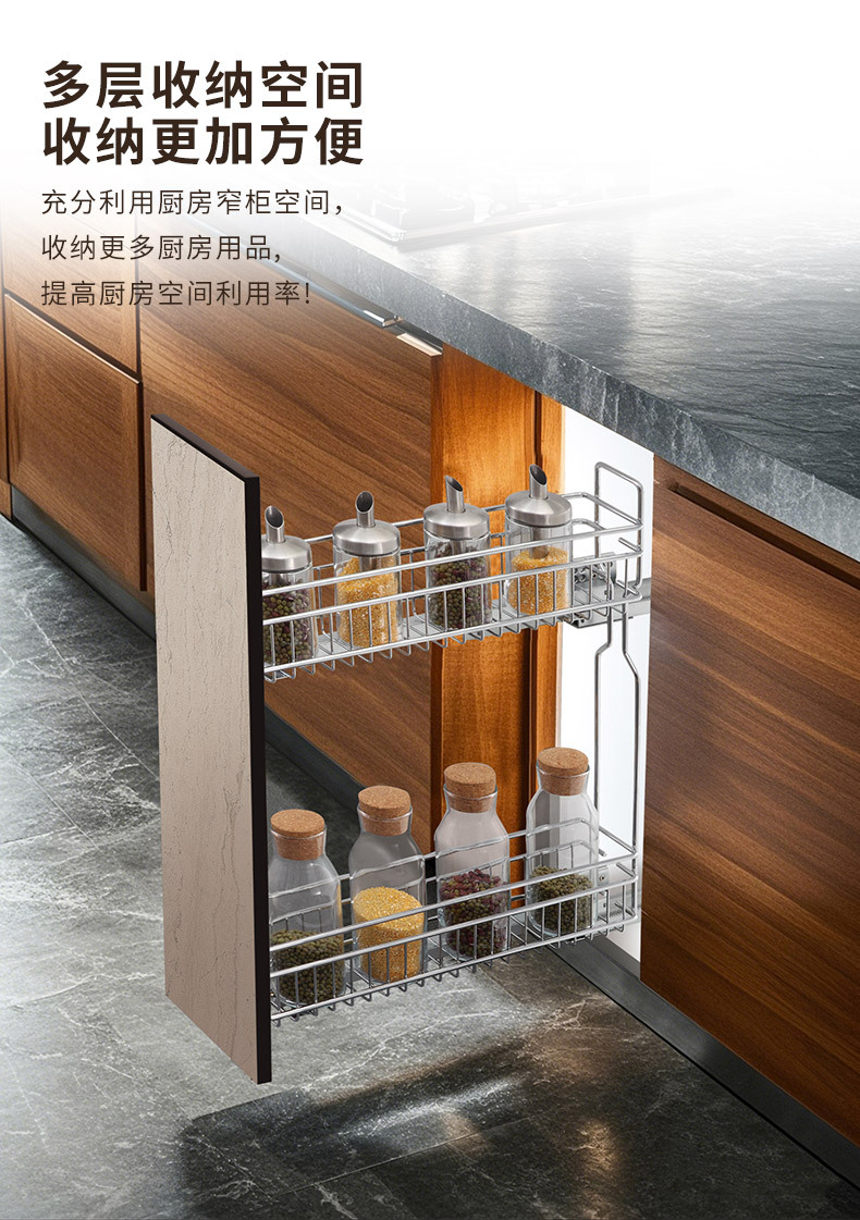 Корзина для приправ, выдвижная корзина для хранения, двухслойная боковая корзина с буферным демпфированием, внешняя торговля, самая продаваемая модель, оптовая продажа