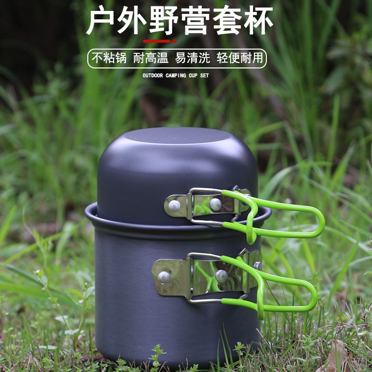 Наружные товары Amazon Горячие продажи Наружные горшки для 1-2 человек Портативная походная плита с посудой DS-101