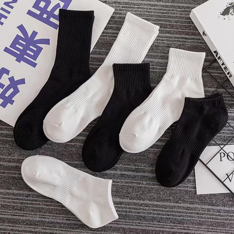 Носки из чистого хлопка Средняя бочка для мужчин и женщин Пара Черно-белые короткие бочки Высокие длинные ины Простые баскетбольные Беговые Спортивные Повседневные носки